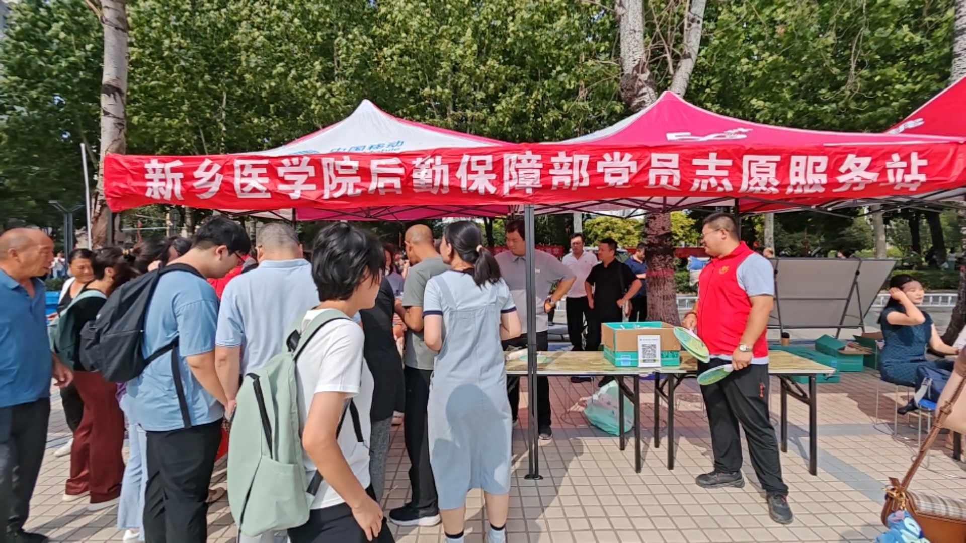 学校后勤组建以机关后勤第一党支部、机关后勤第二党支部及机关党委保卫支部三个支部党员为基础的志愿服务队,开展以党建为引领,党建工作与迎新服务深度融合,涵盖绿色低碳、美丽中国宣传,后勤党员冲锋在前的,为新生、家长提供咨询、休息及饮水、零食、纸巾、保洁、驱蚊用品等各类保障服务的志愿服务活动,并在河南志愿云系统发布。