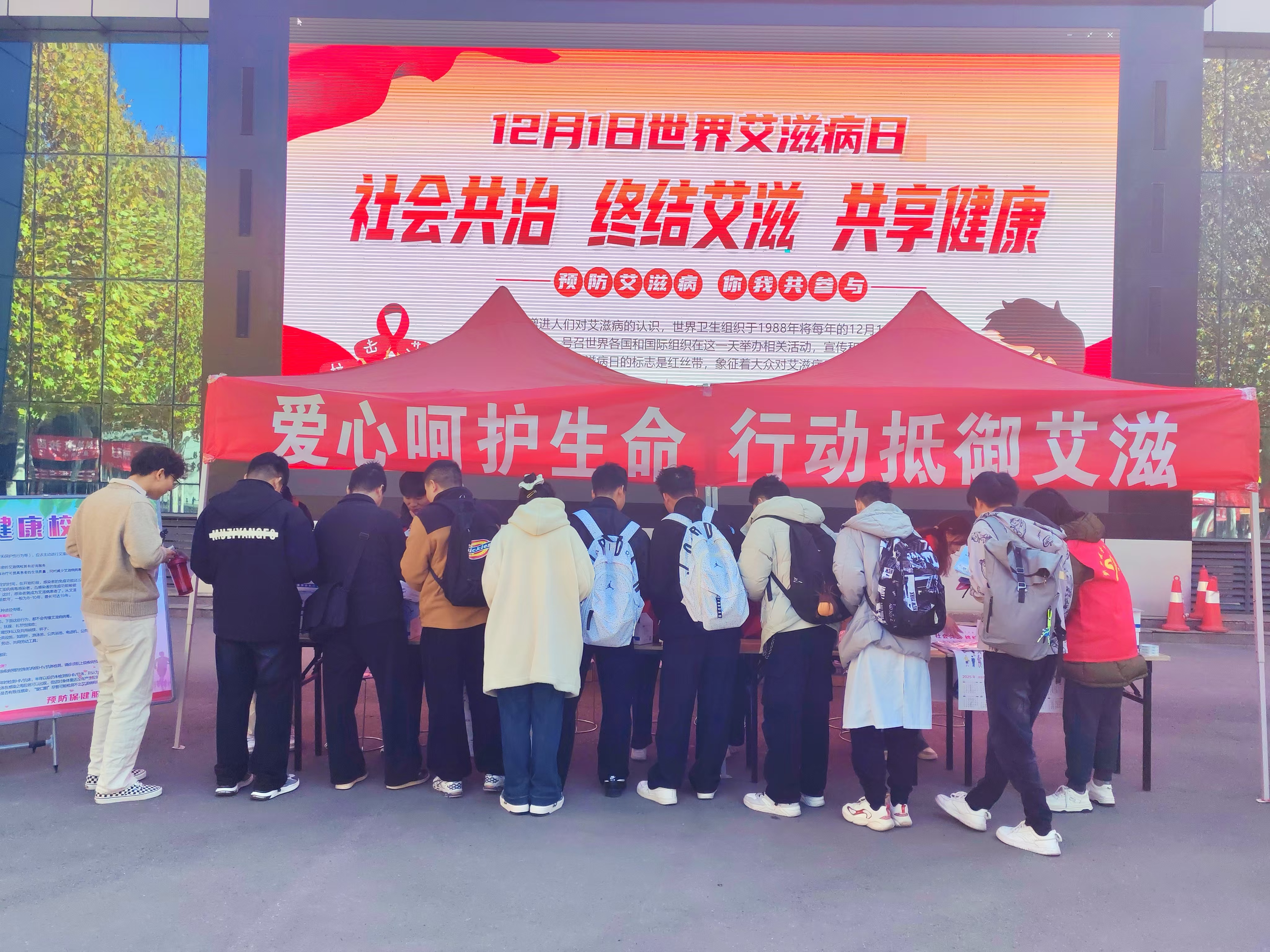 为了提高广大师生对艾滋病的认识和防范意识,营造健康、安全的校园环境。12月1日,在第37个“世界艾滋病日”,后勤保障部联合药学院举办了以“社会共治 终结艾滋 共享健康”为主题的防艾宣传活动,在校园内掀起了一股学习防艾知识的热潮。