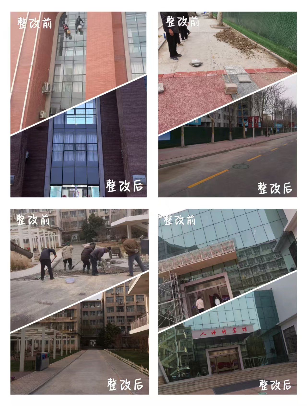 “网格化工作制度”实施以来,对校园环境老旧问题、突出问题进行了细致的排查,如部分楼宇走廊墙漆剥落、门牌照明灯故障、部分便道砖塌陷、玻璃幕墙积灰、个别卫生间水管漏水……每一处破损都关乎安全,每一块缺失都影响校园风貌。后勤人员以“隐患不过夜”的决心,面对繁重的整改任务,迎难而上,将问题逐一梳理,登记造册,形成整改台账,及时实施。