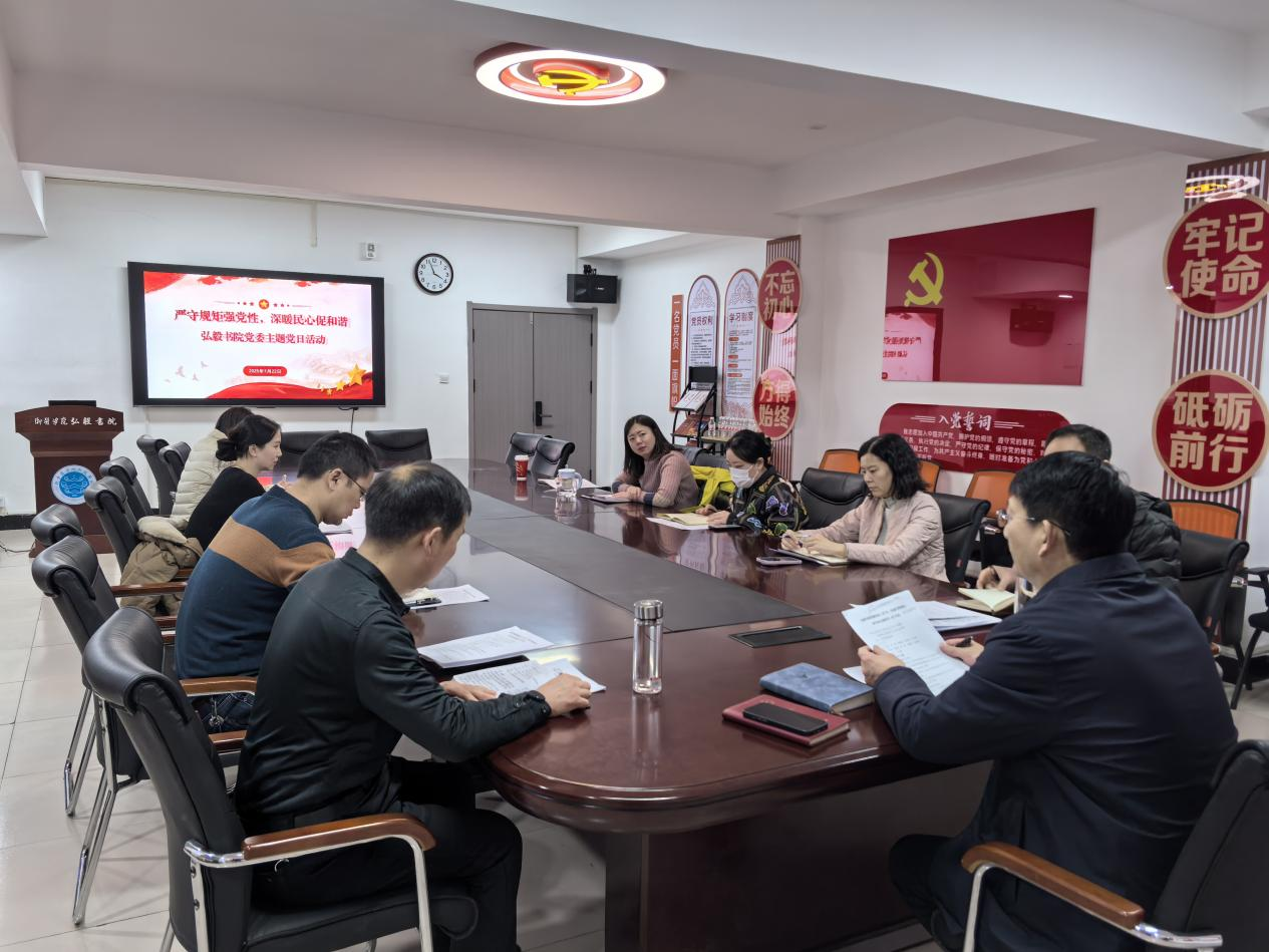1月22日下午,各学生党支部以“严守规矩强党性,深暖民心促和谐”为题联合召开1-2月份主题党日活动。弘毅书院党委书记、院长王正晓,党委副书记李强,副院长雒国胜及全体党员参加。活动由王正晓主持。