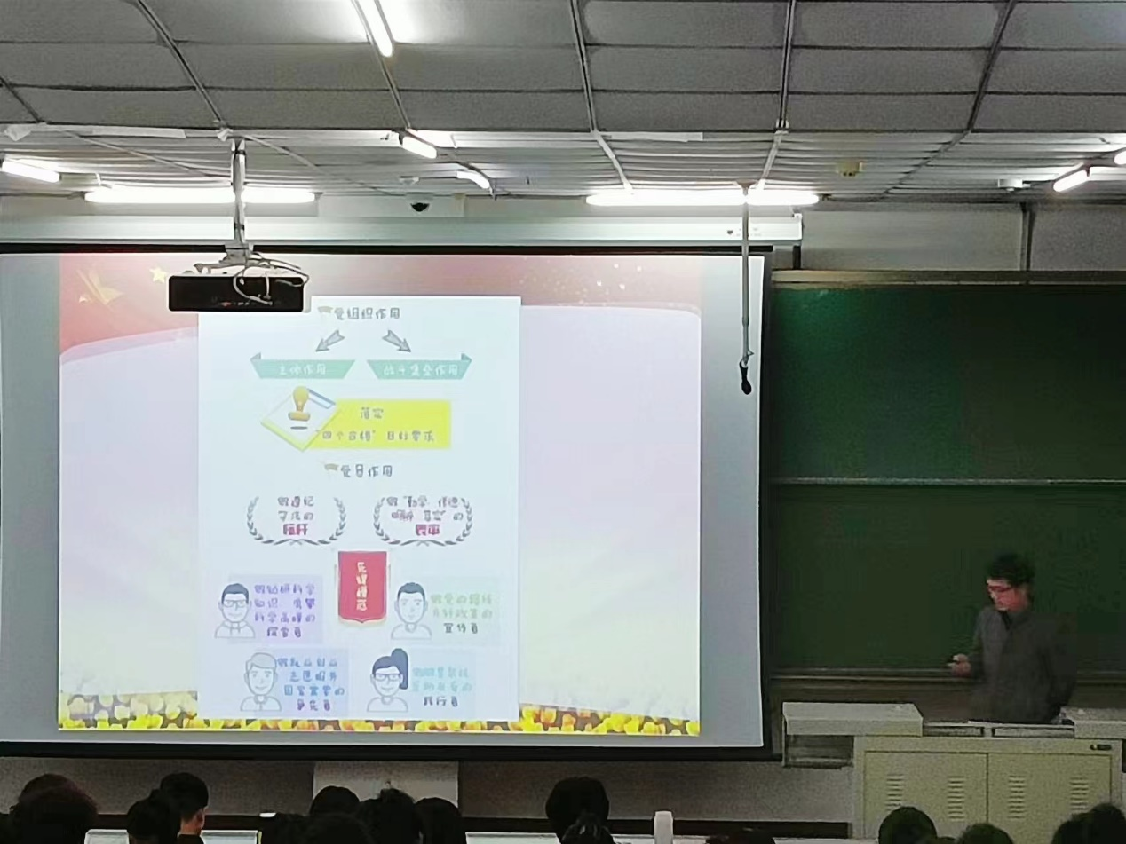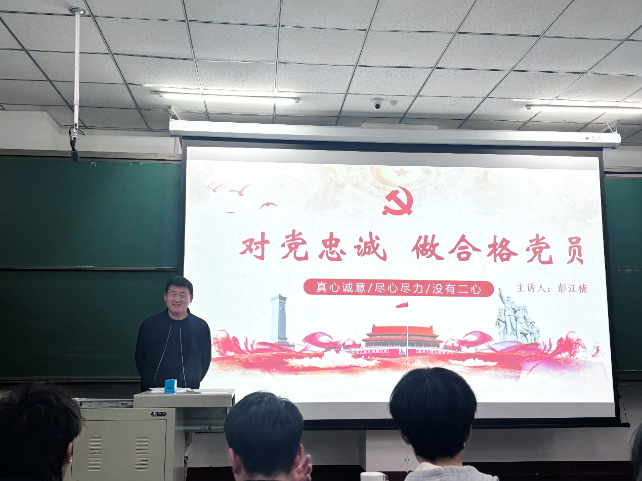 3月22日,学生第二党支部书记彭江楠以“忠诚于党,做合格的共产党员”为题给同学们进行授课。他强调,作为一名合格党员,要时刻做到真心诚意、尽心尽力。对党忠诚是共产党员的政治生命线,通过彭江楠老师的讲解,相信同学们能拥护党的领导,紧跟时代步伐,成为一名合格党员。