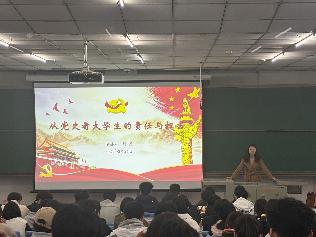 3月24日,刘晨老师以“从党史看大学生的责任与担当”为主题,以中国共产党的历史为基础来探究大学生的责任与担当,让同学们以史为鉴,学习英雄楷模,做到自强不息,矢志不渝,接好历史的接力棒,为中华民族伟大复兴而不懈奋斗。