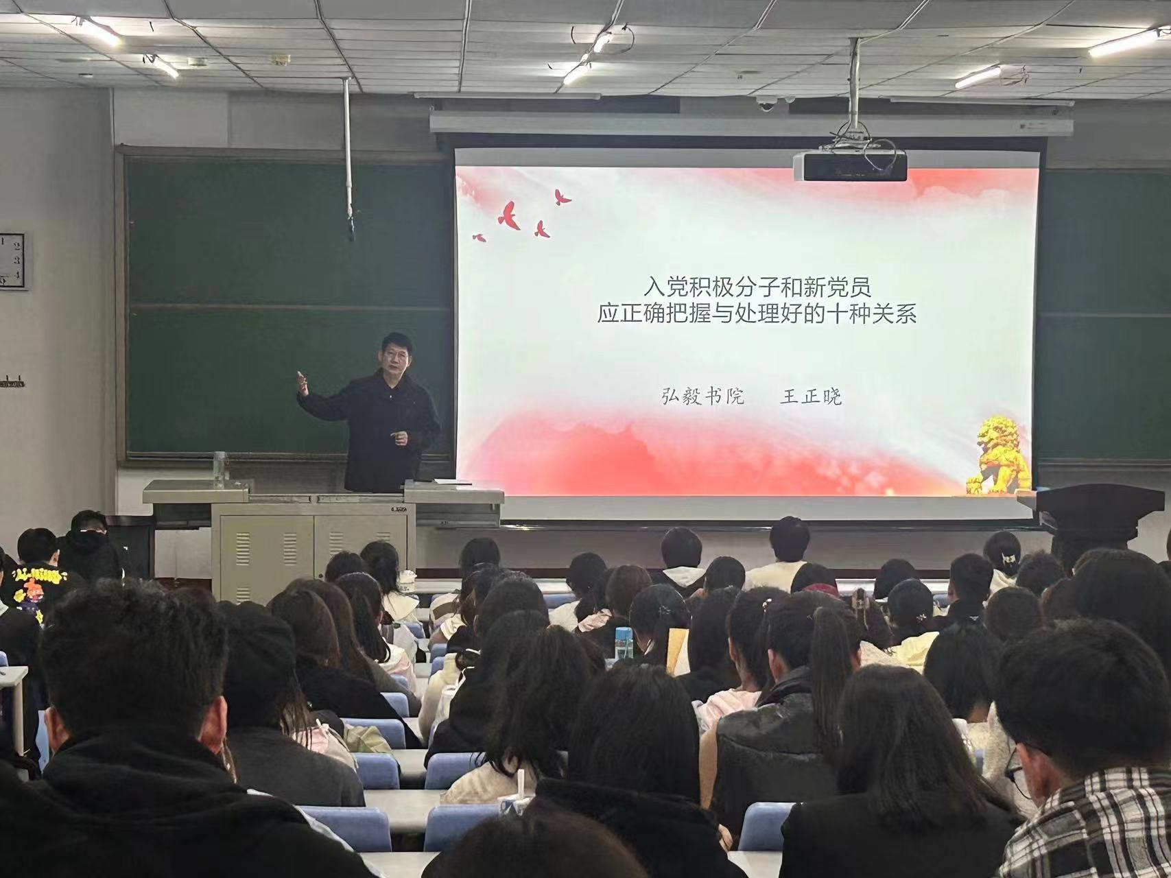 3月21日,弘毅书院党委2024年上半年入党积极分子培训班开班典礼顺利举行。在开班第一课上,王正晓书记以“入党积极分子和新党员应正确把握和处理好的十种关系”为题讲授党课,同学们认真听讲,牢记在心。