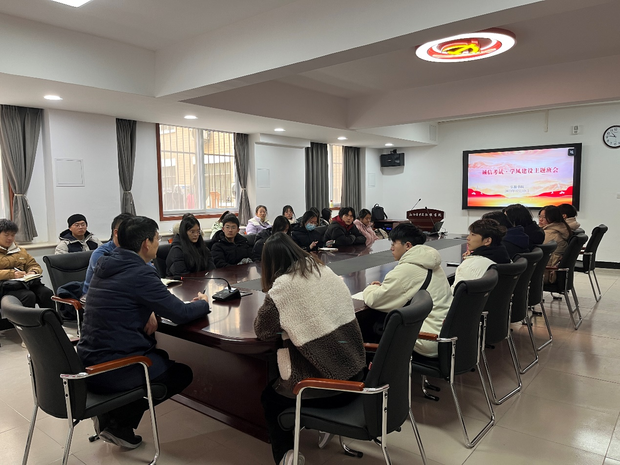 考试月在即,为加强学生诚信教育,增强学生的诚信考试意识,进一步营造良好诚信学风和考风,12月19日上午,弘毅书院开展诚信考试主题的学风建设活动,书院党委书记、院长王正晓主讲,团委书记、学生事务服务办公室主任孙许朋,辅导员刘晨参加此次主题班会。