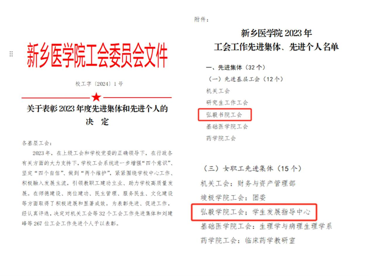 近日,学校工会公布了2023年工会工作先进集体及先进个人名单,我院工会荣获“先进基层工会”,学生发展指导中心荣获“女职工先进集体”表彰。焦荟洁、刘晨分别荣获“先进工会工作者”、“工会积极分子”荣誉称号。