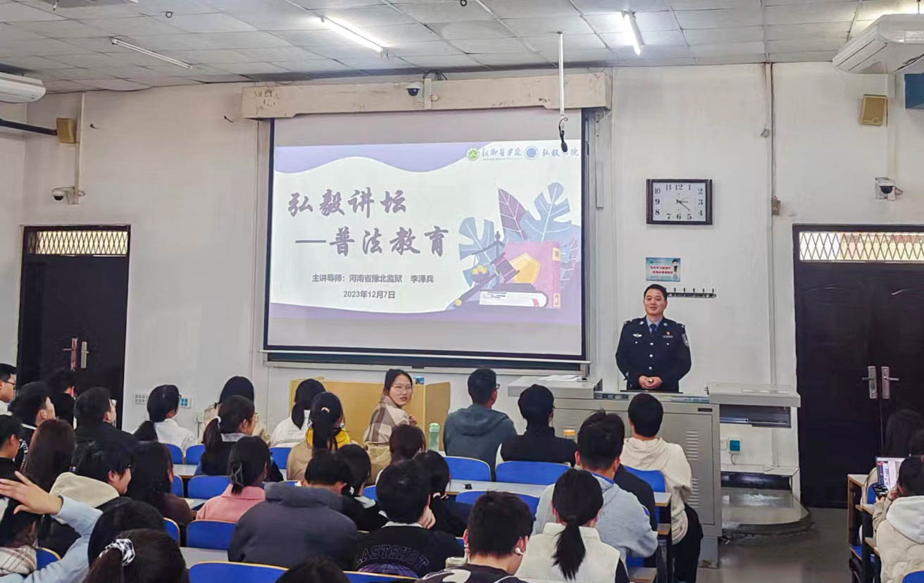 为了进一步增强书院学生的法制意识,增强学生法制观念,提升学生的自我保护和安全防范意识,推进法制教育进社区,共创和谐平安社区。12月7日,我院特邀请河南省豫北监狱李泽兵警官为学生开展普法教育,2023级公共事业管理、生物医学工程等专业学生共280余人参加本次会议。