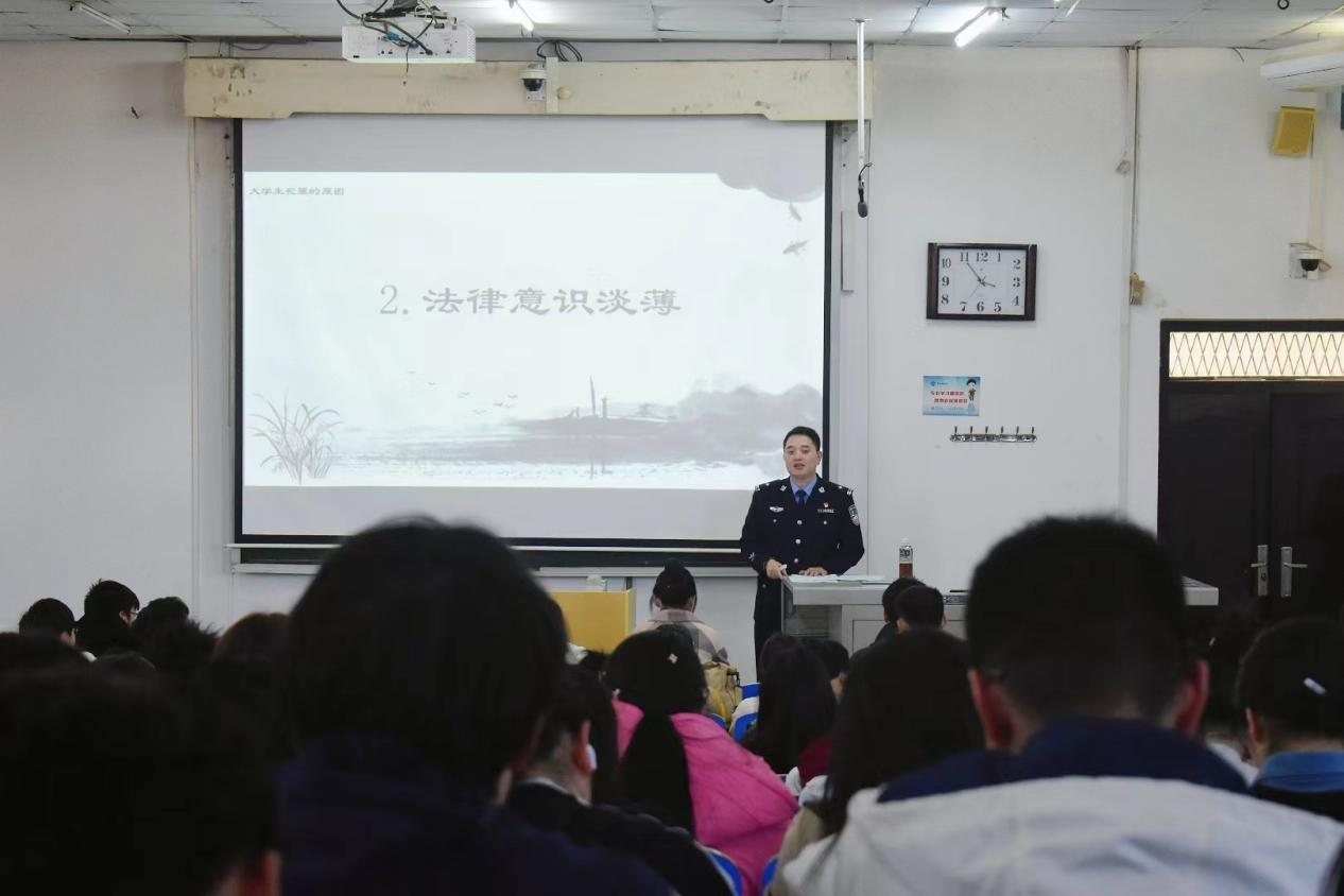 李警官以“警钟长鸣 心向阳光”为题,以案说法围绕大学生违法犯罪的常见因素、主要特征、犯罪心理分析等几个方面深入浅出地讲解法律知识,结合丰富的工作经验用典型案例生动地给大家讲解了具有高智商、高素质、高层次的大学生触犯法律,身陷囹圄,断送美好前程的案件,深度剖析了大学生犯罪案件的原因和特点。李警官引导大家要加强法律知识学习,增强法制观念,提升法制素养,规范自己的行为,维护自身合法权益,做好情绪管理、树立正确的人生观和法治观。李警官以诙谐幽默的语言给大家上了一堂生动有趣、内涵丰富的普法教育课,同学们纷纷表示受益匪浅。