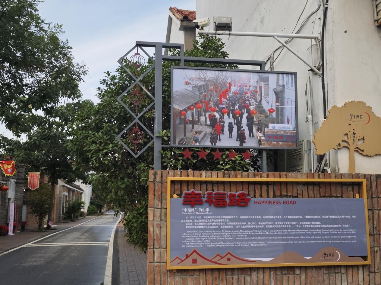 2016年底,张庄村如期实现脱贫。脱贫后,张庄村把村里的主干道取名为幸福路。走进幸福路,路面平整,干净整洁。道边的民房,红砖黛瓦,很多村民的庭院门前还挂着喜庆的灯笼,居民家门前钉着印有“美丽庭院”“五好家庭”“兰考文明户”“信用户”等标识的金属牌。