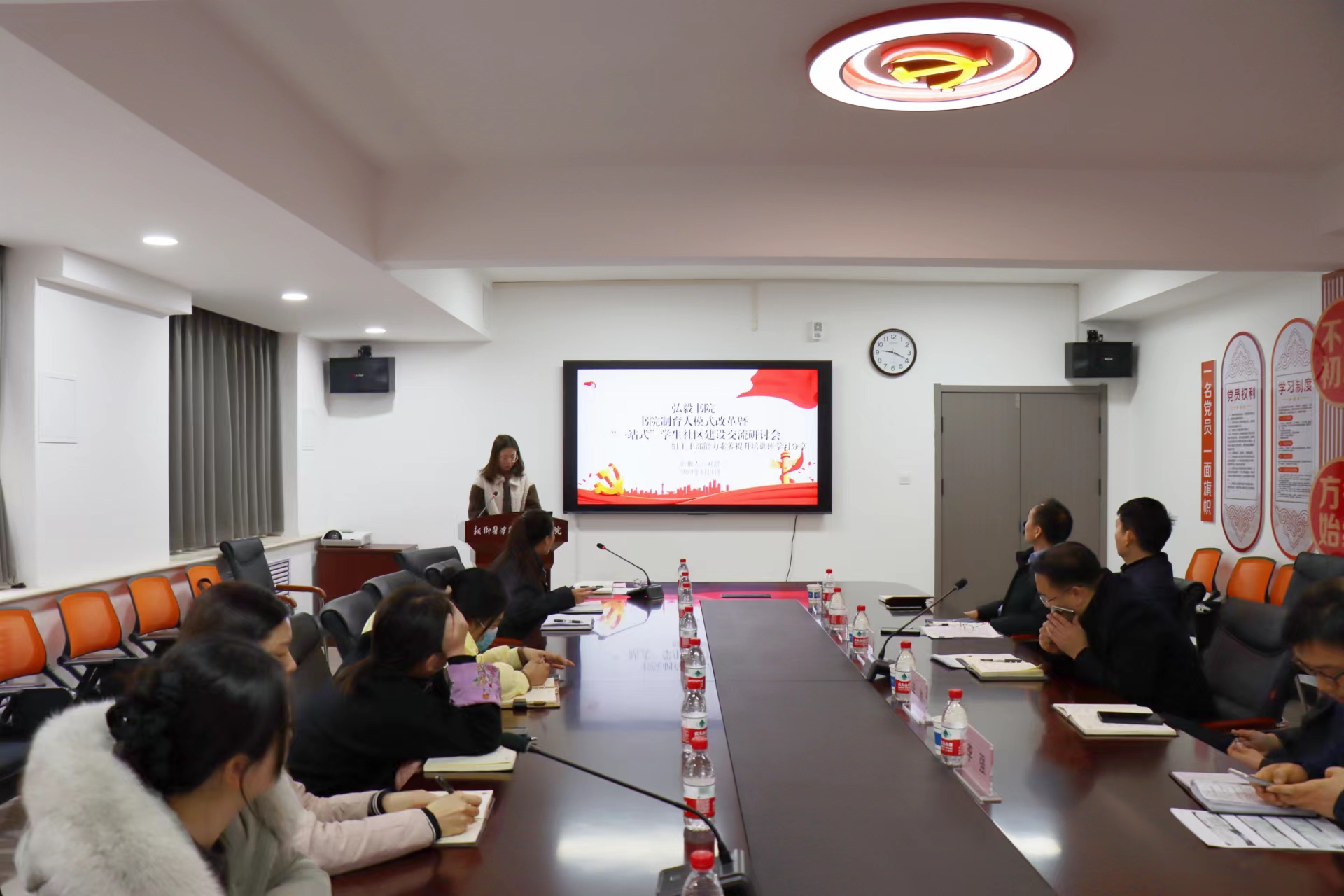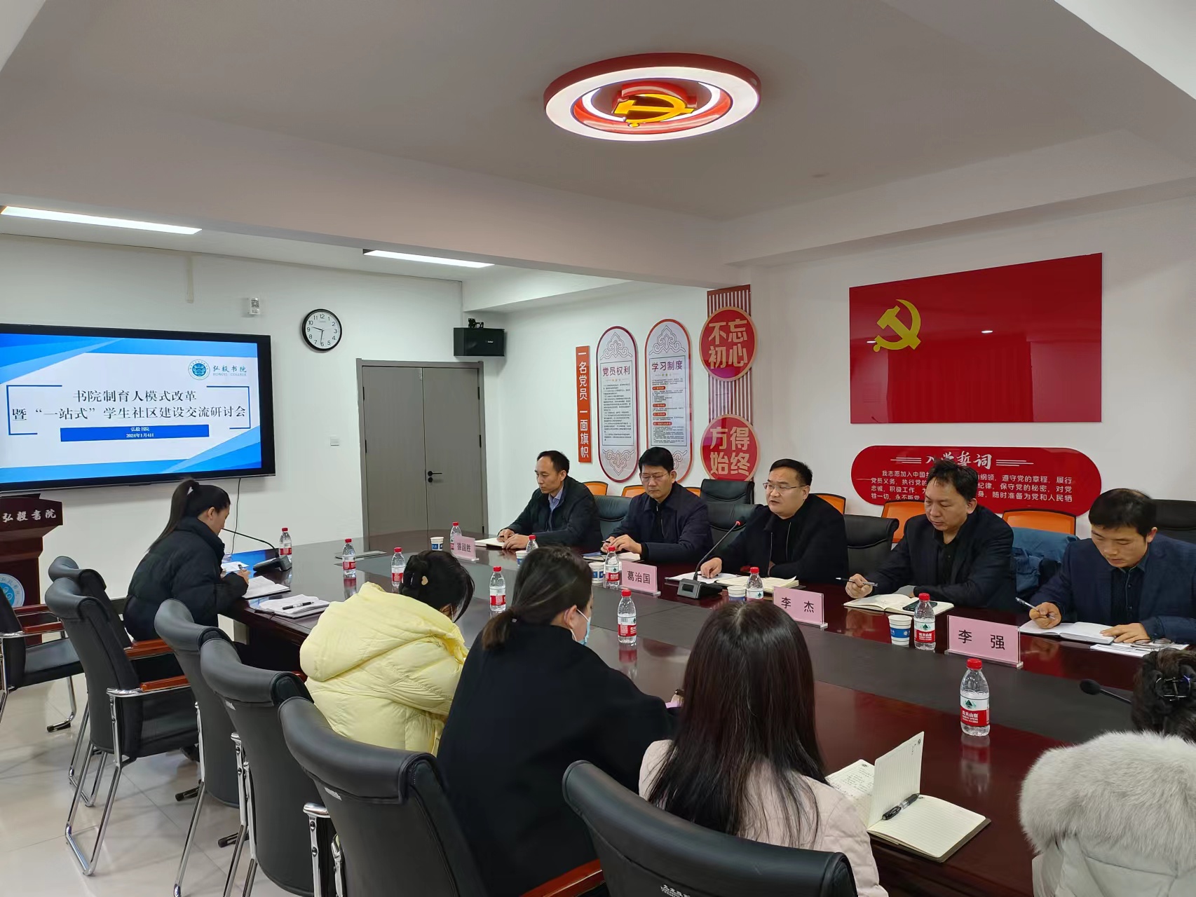 1月4日,书院制育人模式改革暨“一站式”学生社区建设交流研讨会在弘毅书院会议室顺利举办。我校党委本科生工作部部长、本科生学院院长、本科生工作党委书记、武装部部长、就业指导中心(创新创业学院)主任(院长)葛治国,学生中心主任、党委本科生工作部副部长(兼)、本科生学院副院长(兼)李杰出席,弘毅书院党委书记王正晓、副书记李强、副院长雒国胜及全体辅导员参加。