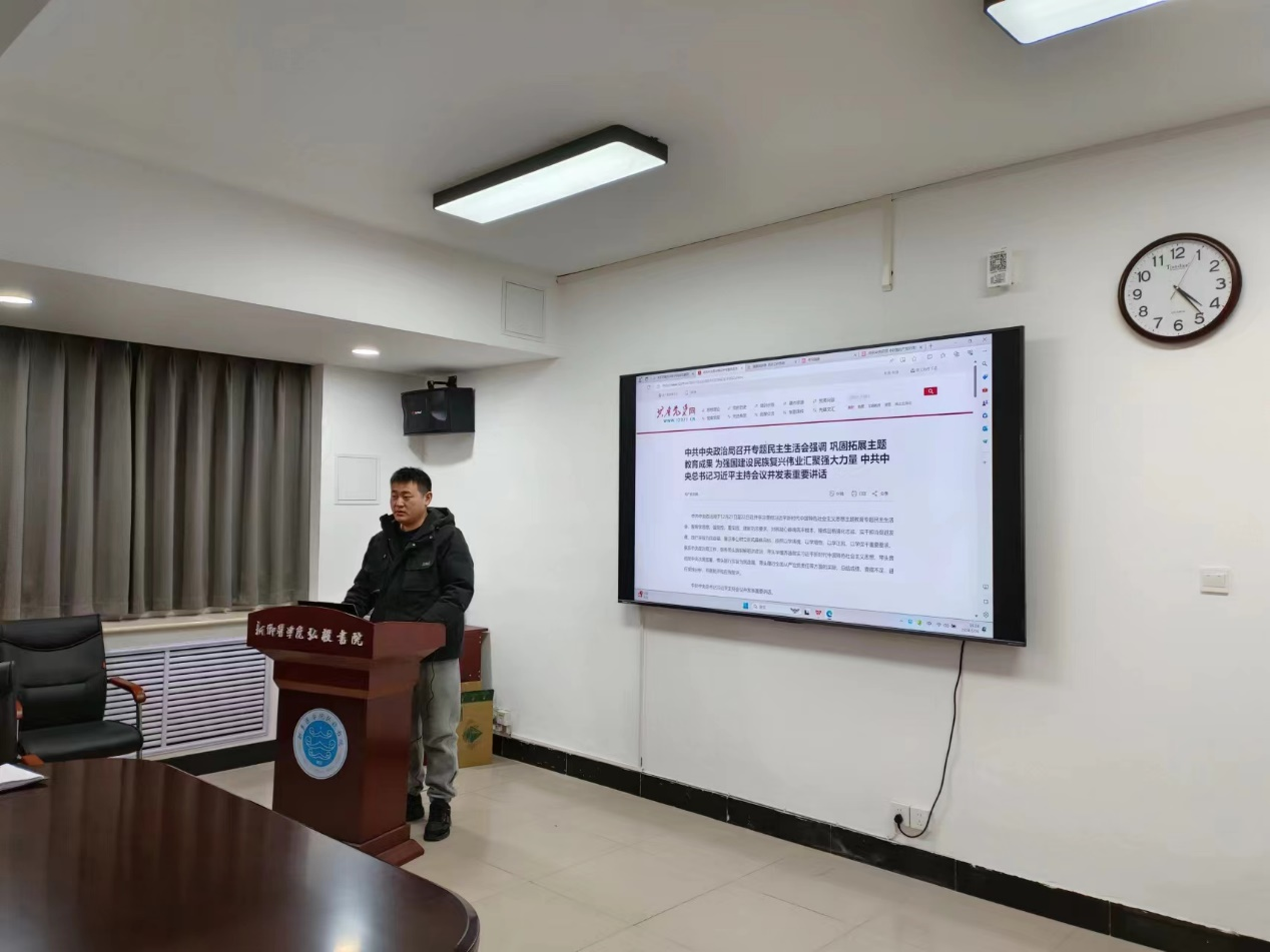 学生第四党支部书记孙许朋汇报现有的入党积极分子存量和具体情况,全体支部书记集体研究谋划了2024年党员发展工作。