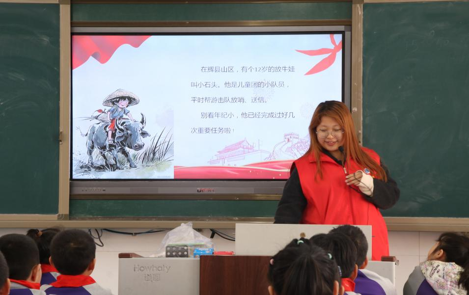 “小石头的故事告诉我们,智慧与勇气同样重要!”支部同学们以“哥哥姐姐讲故事”的形式,向小学生讲述新乡本土英雄事迹,一字一句,饱含着对英雄的敬仰与追思。在英雄先辈一个一个鲜活的故事中,大家深刻理解了英雄精神的内涵,感受到他们无畏的精神气概,一颗颗幼小的心灵被英雄精神点亮。