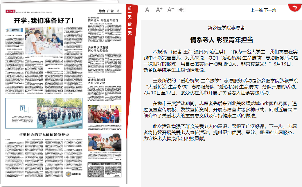 【安阳日报】等媒体报道我院学子开展“情系老人 彰显青春担当”暑期社会实践活动