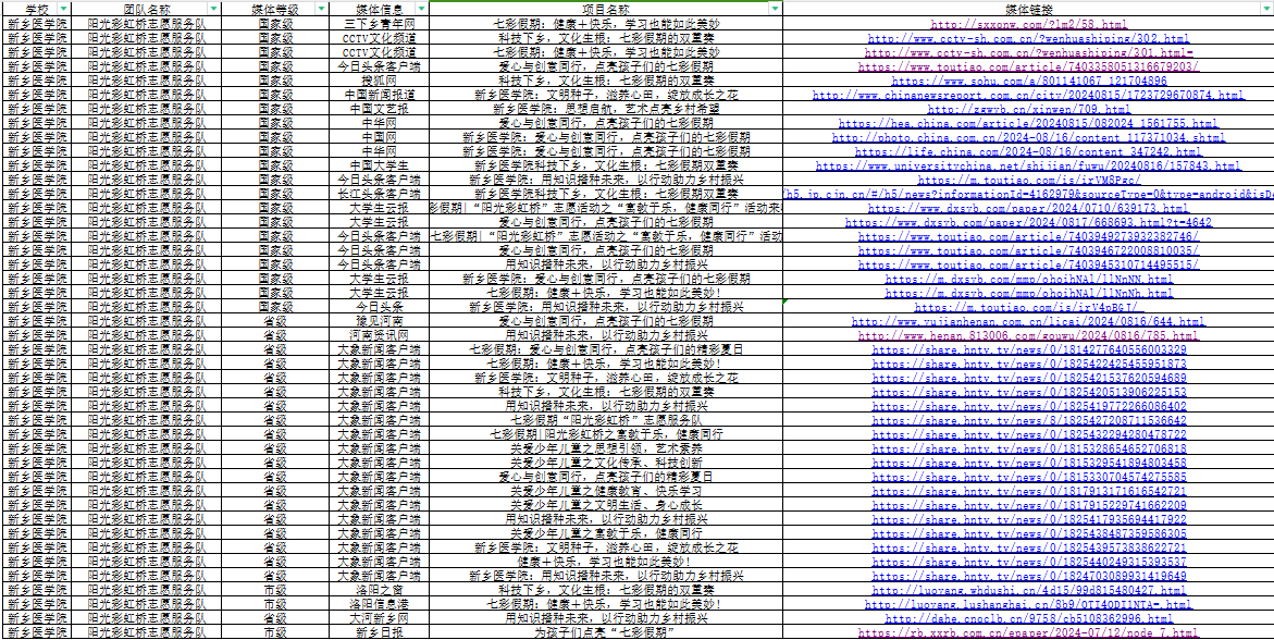 为深入学习宣传贯彻习近平新时代中国特色社会主义思想和党的二十大精神,切实加强对农村留守儿童、寄宿儿童、困境儿童等少年儿童群体的关心关爱,暑假期间,我院七彩假期“阳光彩虹桥”志愿服务团围绕思想引领、文明生活、身心成长、科技创新等内容,开展了丰富多彩的青年志愿者服务课堂,被中国网、中华网、CCTV文化频道、搜狐网、今日头条等24家国家媒体,27家省级媒体,其余共计64家媒体先后报道,阅读点击量累计突破万次。