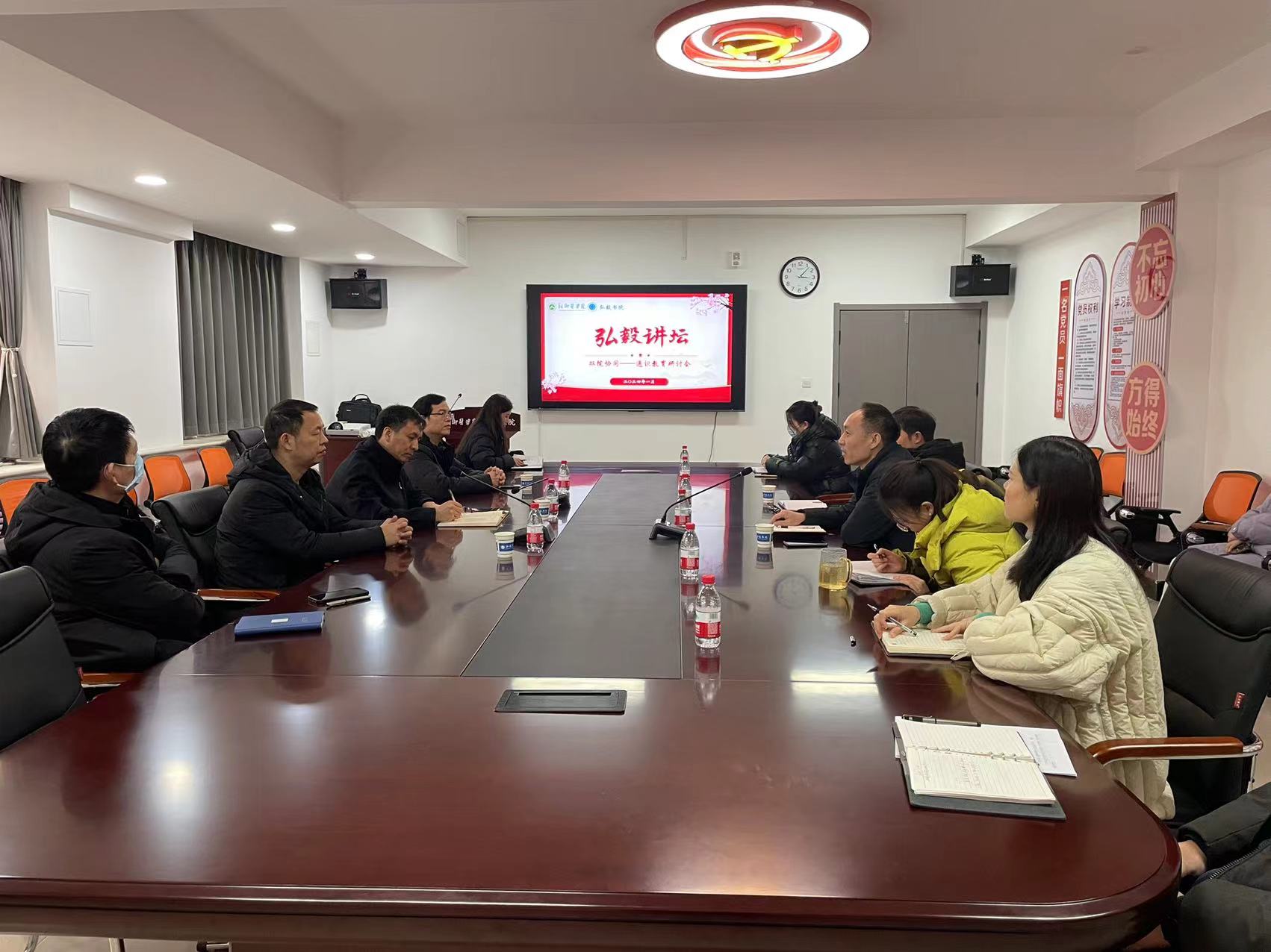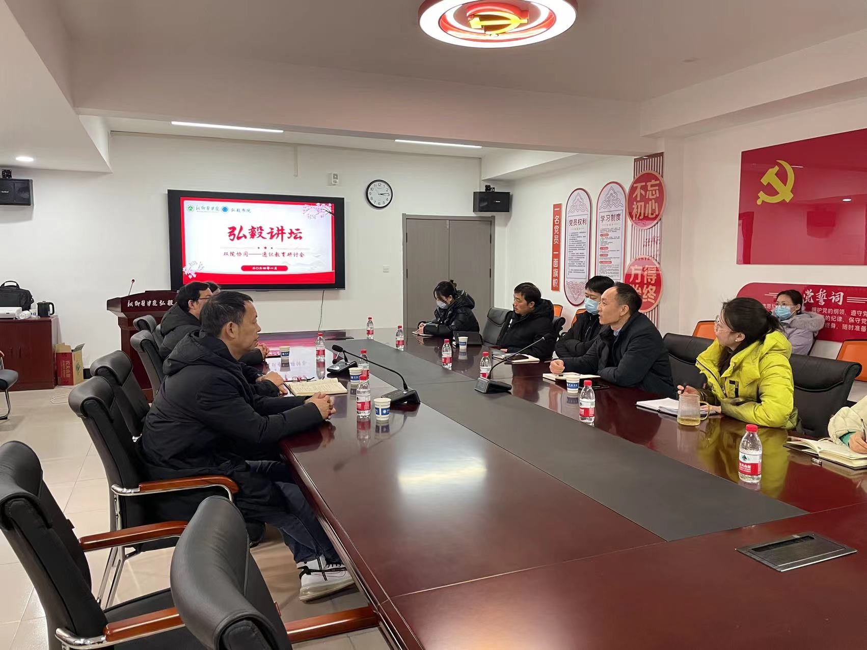 1月25日,弘毅书院与医学人文学院双院协同——通识教育研讨会在弘毅书院会议室顺利举办。我校医学人文学院院长李新国副院长牛军伟教学管理与专业建设办公室主任张锦伟弘毅书院党委书记、院长王正晓党委副书记李强副院长雒国胜及全体辅导员参加。