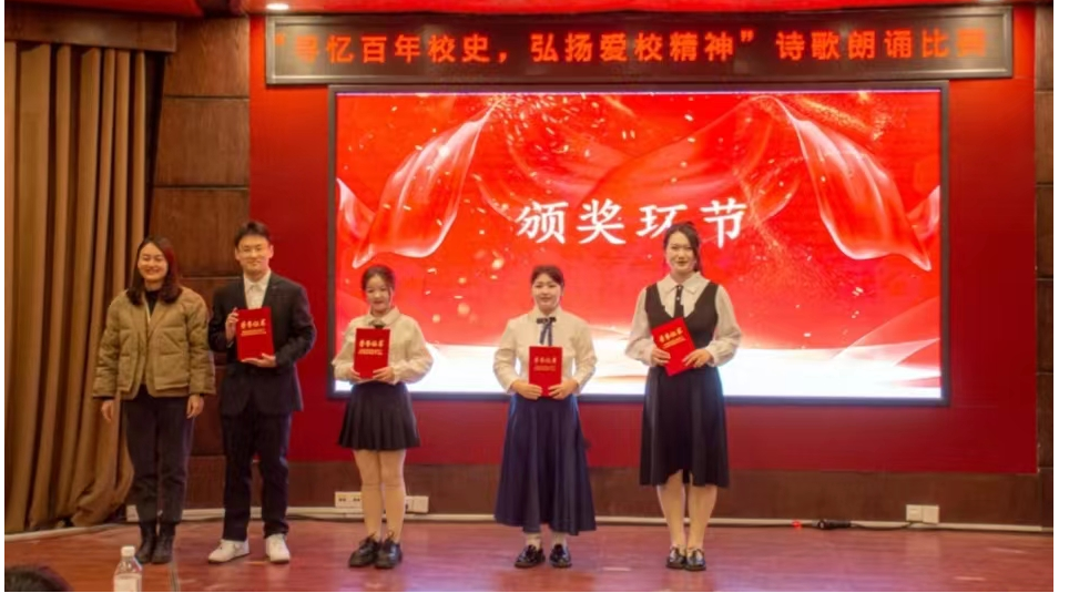 11月28日,我校月末文化广场第二站暨“寻忆百年校史,弘扬爱校精神”诗歌朗诵比赛在第三报告厅举行,弘毅学子贺梦月、袁怿斩获佳绩。