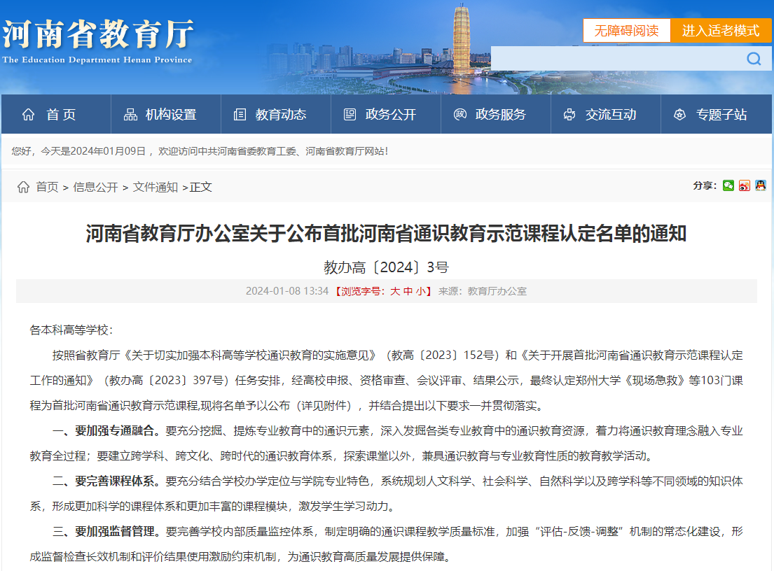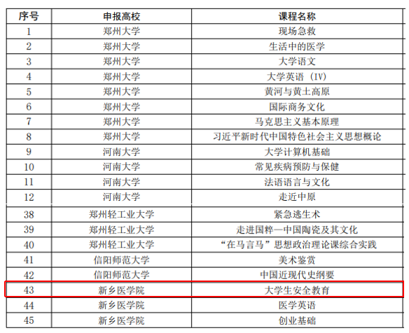 近日,河南省教育厅公布了《首批河南省通识教育示范课程认定名单》,我院申报的《大学生安全教育》获首批河南省通识教育示范课程。