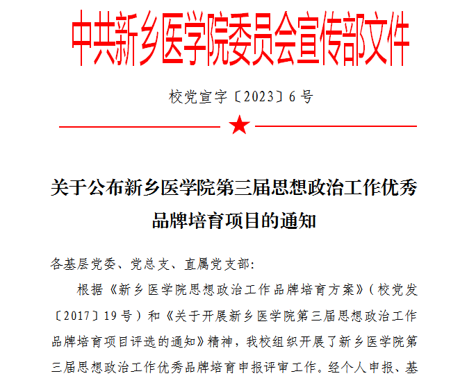 近日,学校发布了《关于公布华亿在线体育(中国)官方网站第三届思想政治工作优秀品牌培育项目的通知》,经个人申报、基层党委(党总支、直属党支部)推荐、材料审核、专家评选等环节,我院辅导员赵茜阳申报的《书院制背景下思政教育融入宿舍“6S”育人体系研究》获评为华亿在线体育(中国)官方网站第三届思想政治工作优秀品牌培育项目。