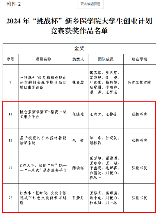 经过书院初赛、校级复赛、答辩及评审专家组评议等环节,我院《粮仓盈满福满家-稻麦一站式服务平台》等4件作品荣获金奖,《基于多元反馈的认知运动康复系统》等2件作品荣获银奖,《大鼠骨骼生物力学智能测试平台的设计和产品研制》等3件作品荣获铜奖;我院荣获优秀组织奖,孙许朋、吕玉娟等5位老师荣获“优秀指导教师”。