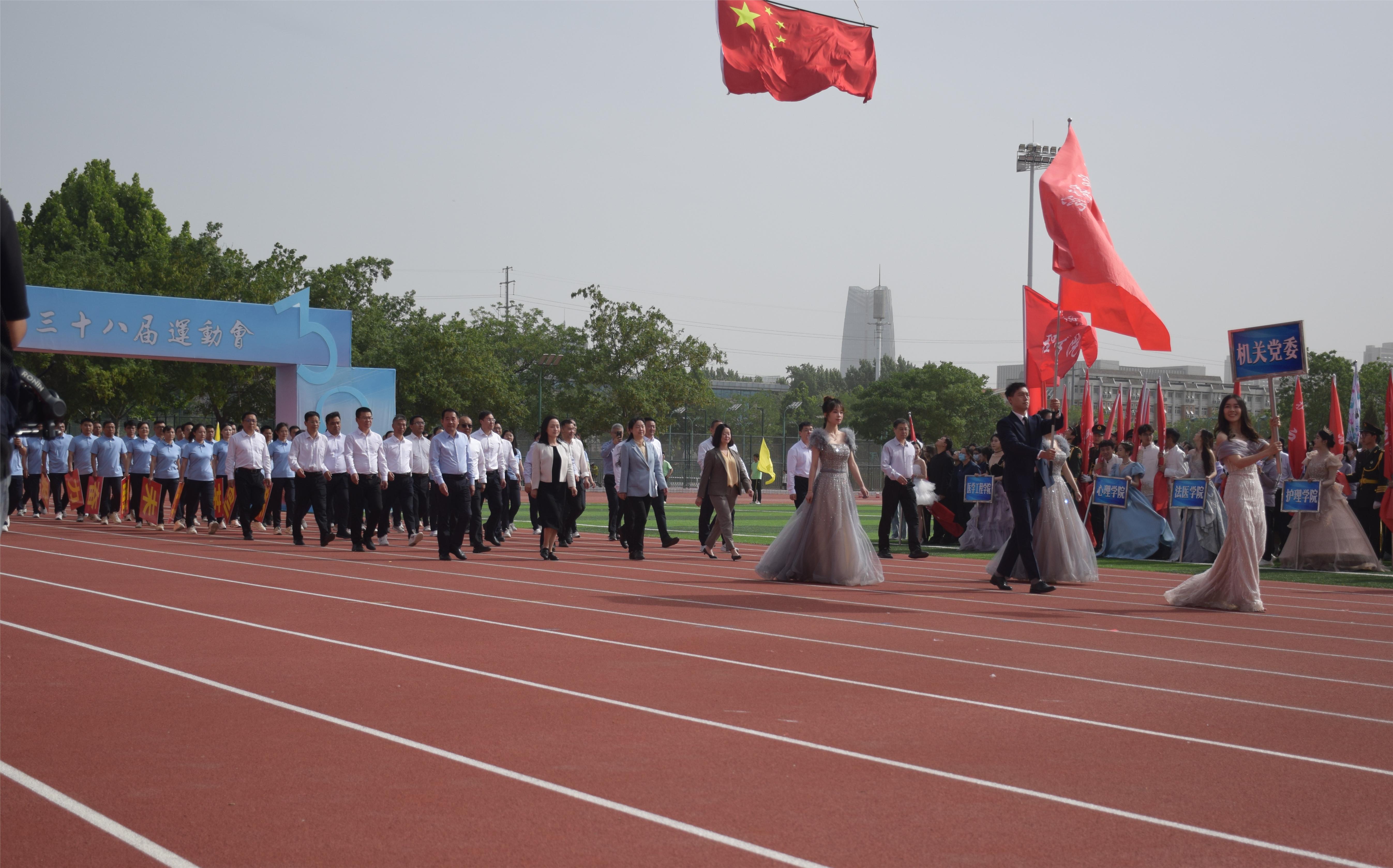 春来征程万里阔 扬帆奋进正当时。5月11日上午9时许,伴随着雄壮激昂的进行曲,机关党委方阵90余名教职工高喊着“勤勉机关 学习实践 改革先锋 管理标杆”口号,精神抖擞、情绪饱满、步伐整齐步入运动场,走过主席台,以列队整齐、造型别致、场面宏大的姿态,接受学校领导和师生的检阅。最终,在机关全体教职工的大力支持和参赛运动员的顽强拼搏下,机关党委喜获本届运动会精神文明奖。