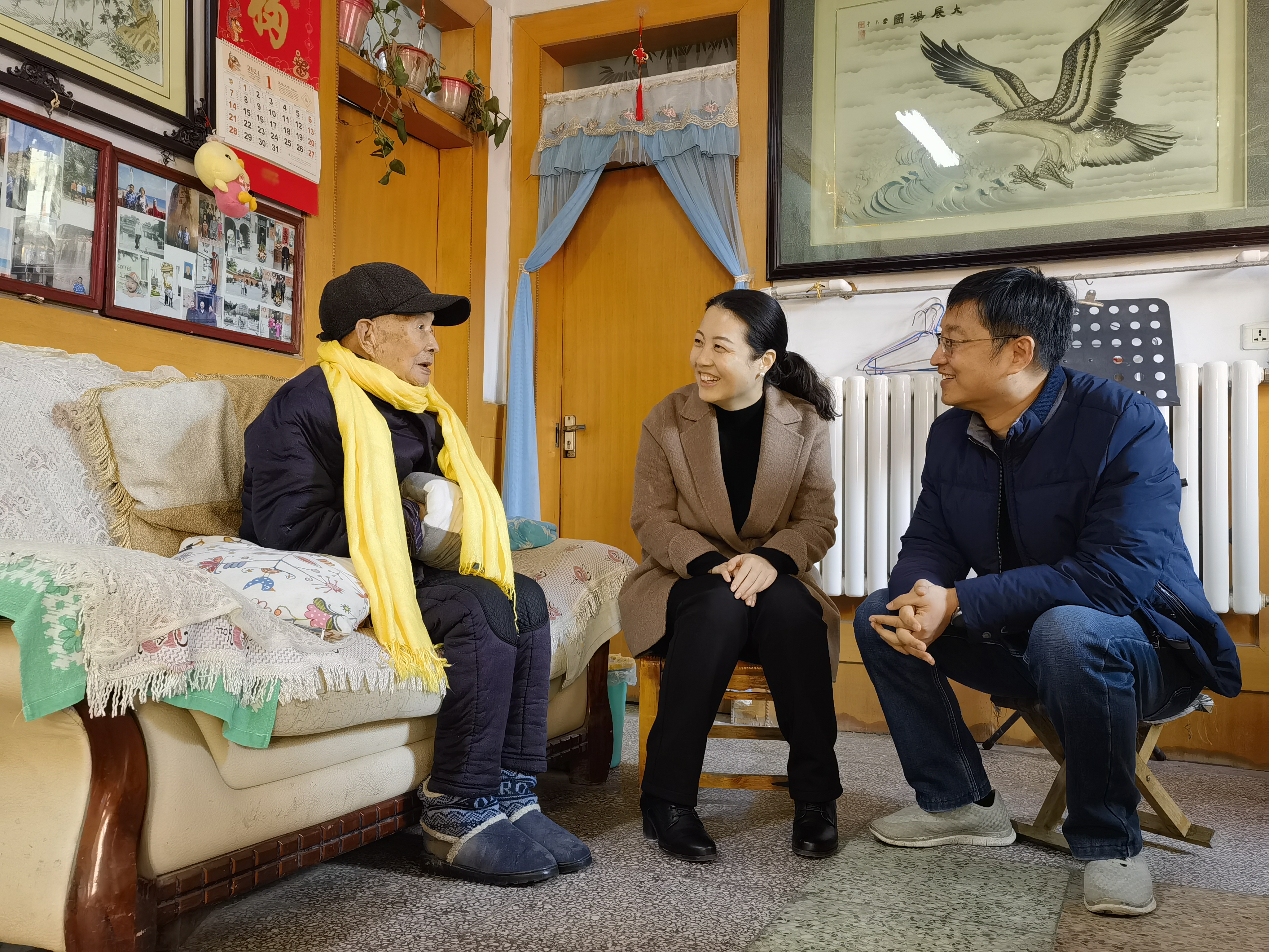 三、过孝老爱亲双节。机关党委组织开展“孝老爱亲  躬身于行”活动,看望慰问教职工家庭中百岁以上老人,弘扬中华民族孝老爱亲传统美德,在机关营造尊老孝老敬老氛围。1月28日上午,机关党委书记郜佩带队来到辉县市中疃村,看望慰问百岁老人牛延福,牛老今年102岁,精神矍铄、思维清晰,一双睿智的眼睛透着和善的光芒,子女陪伴身边。郜佩与老人拉家常、问冷暖,祝愿老人寿比南山、幸福安康,并对老人子女说,家里有百岁老人是儿女的福气,是社会的财富,要用心用情陪伴和关爱老人,共享天伦之乐。1月29日上午,机关党委副书记雷好利带队来到医学北校区家属院,看望慰问百岁老人杨希荣,杨老今年105岁,精神非常好,红光满面,笑容可掬。雷好利与老人亲切交流,关切地询问她们的身体状况和生活情况,并祝杨老身体安康、阖家欢乐。