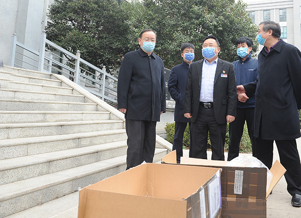捐赠仪式上,王辉详细了解了患者收治情况、防控措施流程、保障物资供应等情况,对坚守疫情防控前线的广大医务人员致以亲切的慰问。他表示,新冠肺炎疫情发生以来,我校各附属医院医务人员无惧艰险、迎难而上、奋战一线,舍小家为大家,充分展现了医务工作者的职业素养和责任担当。在白衣“斗士”不分昼夜奋战一线的同时,广大新医校友也在以实际行动鼎力支持母校疫情防控工作。各地校友会纷纷发起抗击疫情、支援母校的倡议,得到了海内外校友及各界爱心人士的积极响应。北美校友通过各种渠道购买急需的防疫物资,为母校疫情防控提供有力支持,彰显了海外校友对母校和祖国的拳拳赤子深情。