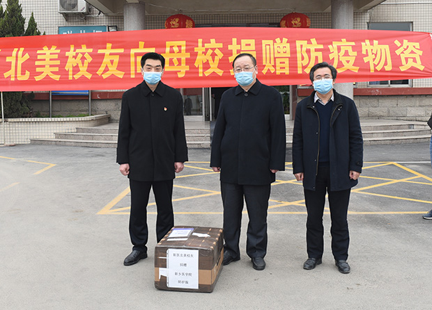 2月24日上午,校党委委员、副校长王辉分别来到第一、三附属医院,将北美校友首批捐赠的3箱共158套医用防护服送到抗“疫”一线。党委办公室、校长办公室、对外联络办公室(校友会办公室)相关负责人陪同前往。