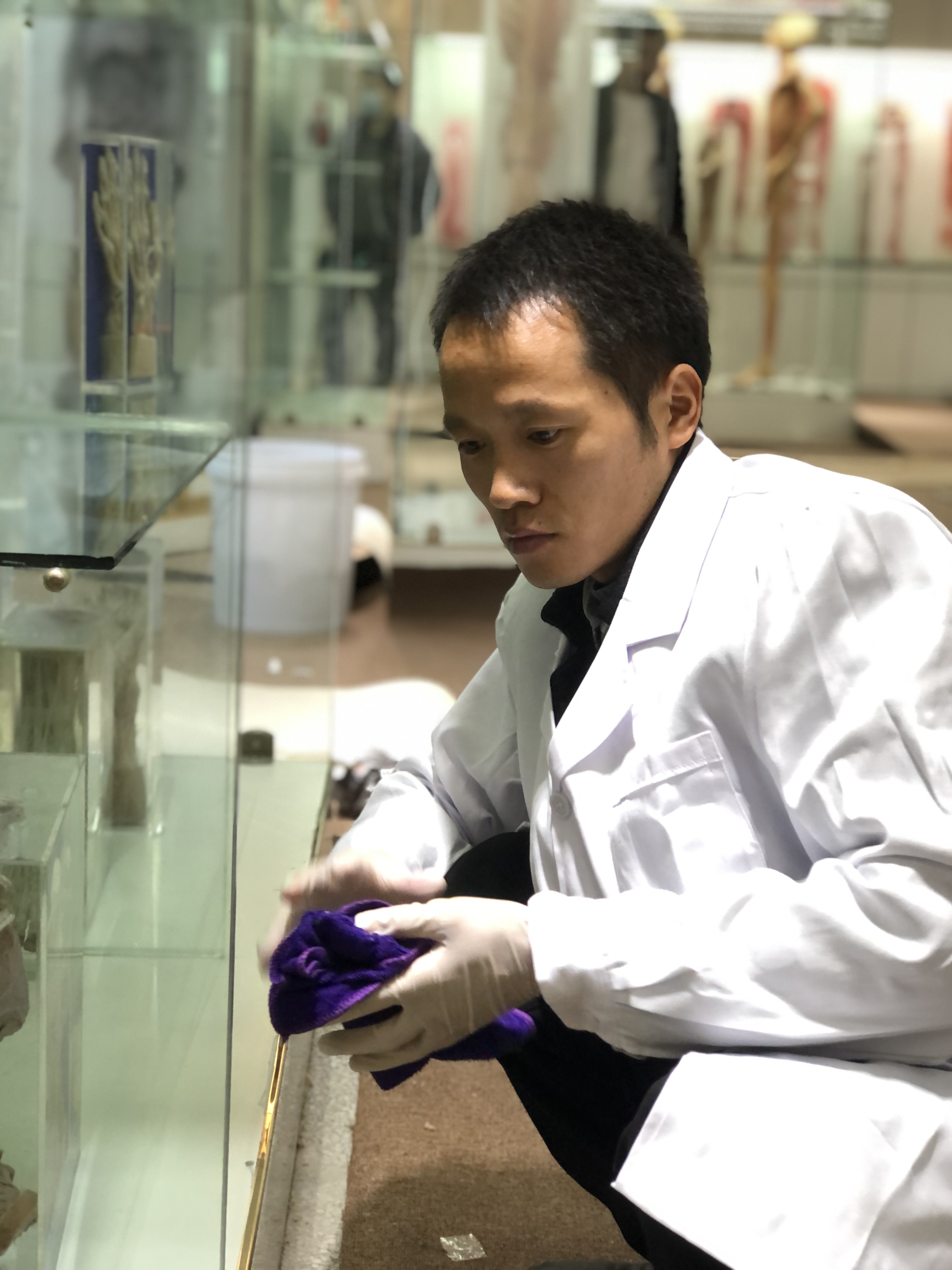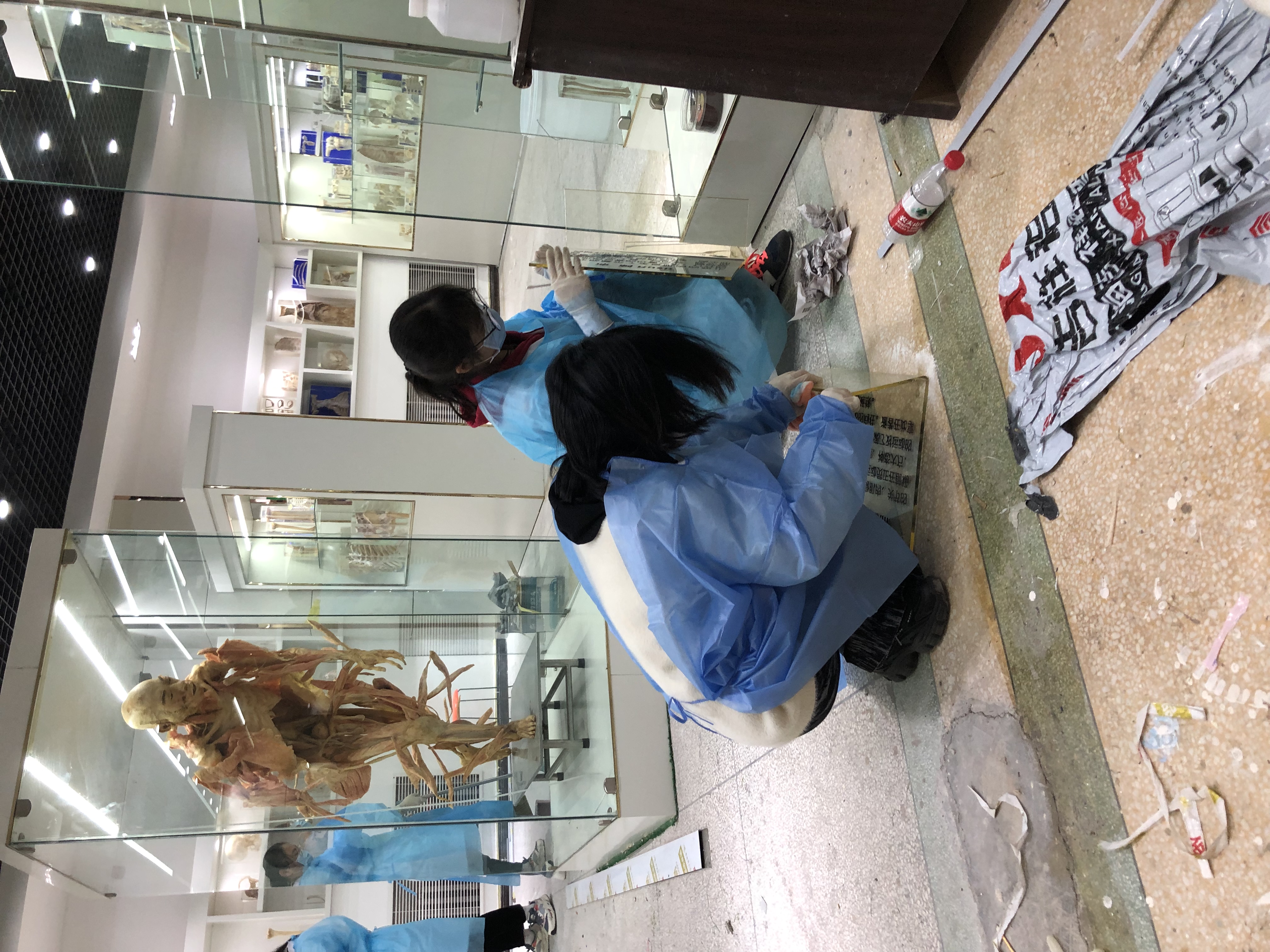 今天是2021年立冬,下雨加寒潮加大风黄色预警,但是没有挡住大体形态学实验室老师来实验室工作的热情。人体馆的维修工程已接近尾声,为了让修缮一新的人体馆尽快与全校师生见面,全体老师周六和周日加班工作。星期日,更是请来了第二课堂的二十多名学生帮忙,对人体馆的进行标本整理摆放和卫生清洁。