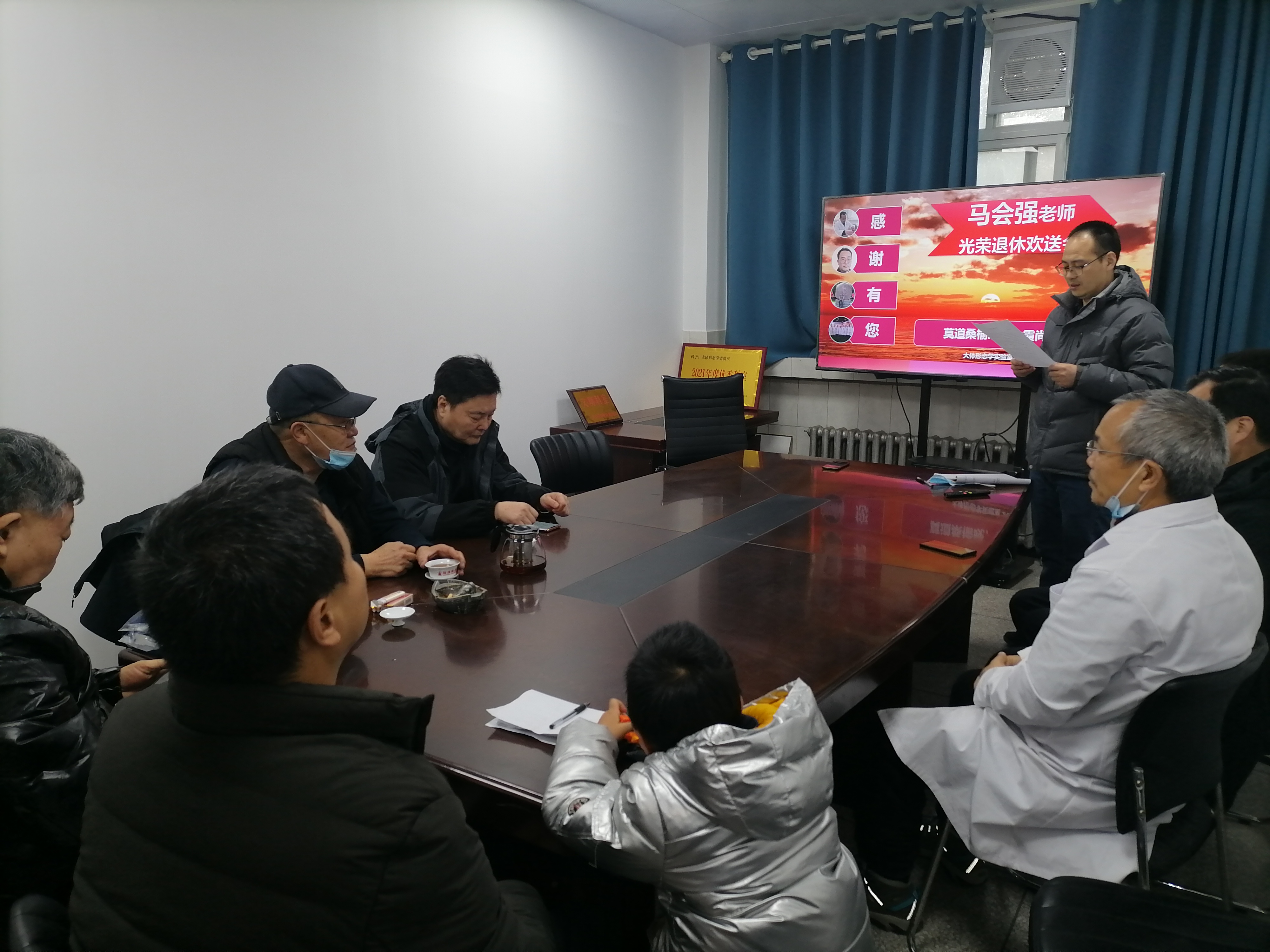 2月16日,大体形态学实验室全体老师,以及曾经在大体形态学实验室工作过的岳学强、吴文斌和去年退休的陈玉红老师,共同为马会强老师举办了一场简单而温馨的欢送会。