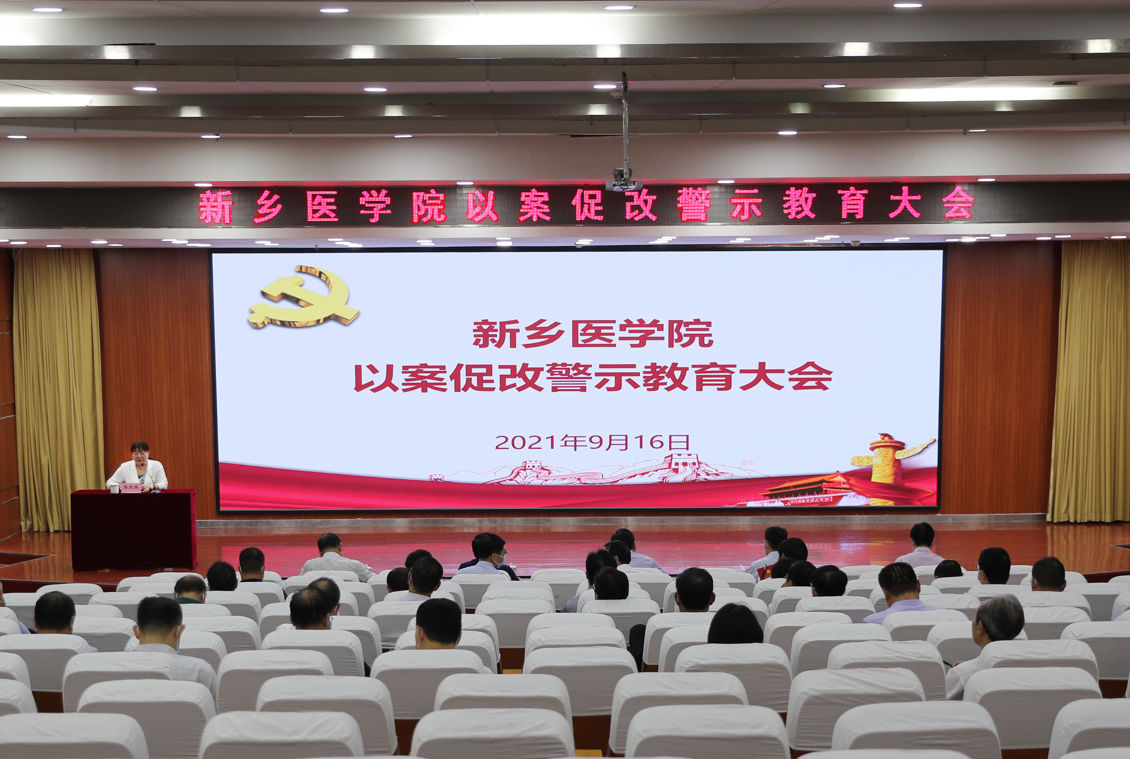 为加强党风廉政建设,深化中秋、国庆期间作风建设,营造风清气正的节日氛围,9月16日下午,我校在第一报告厅召开以案促改警示教育大会。全体在校校领导出席会议,全体正处级干部、附属单位纪委书记参加会议。会议由校党委委员、纪委书记、监察专员郭凯英主持。