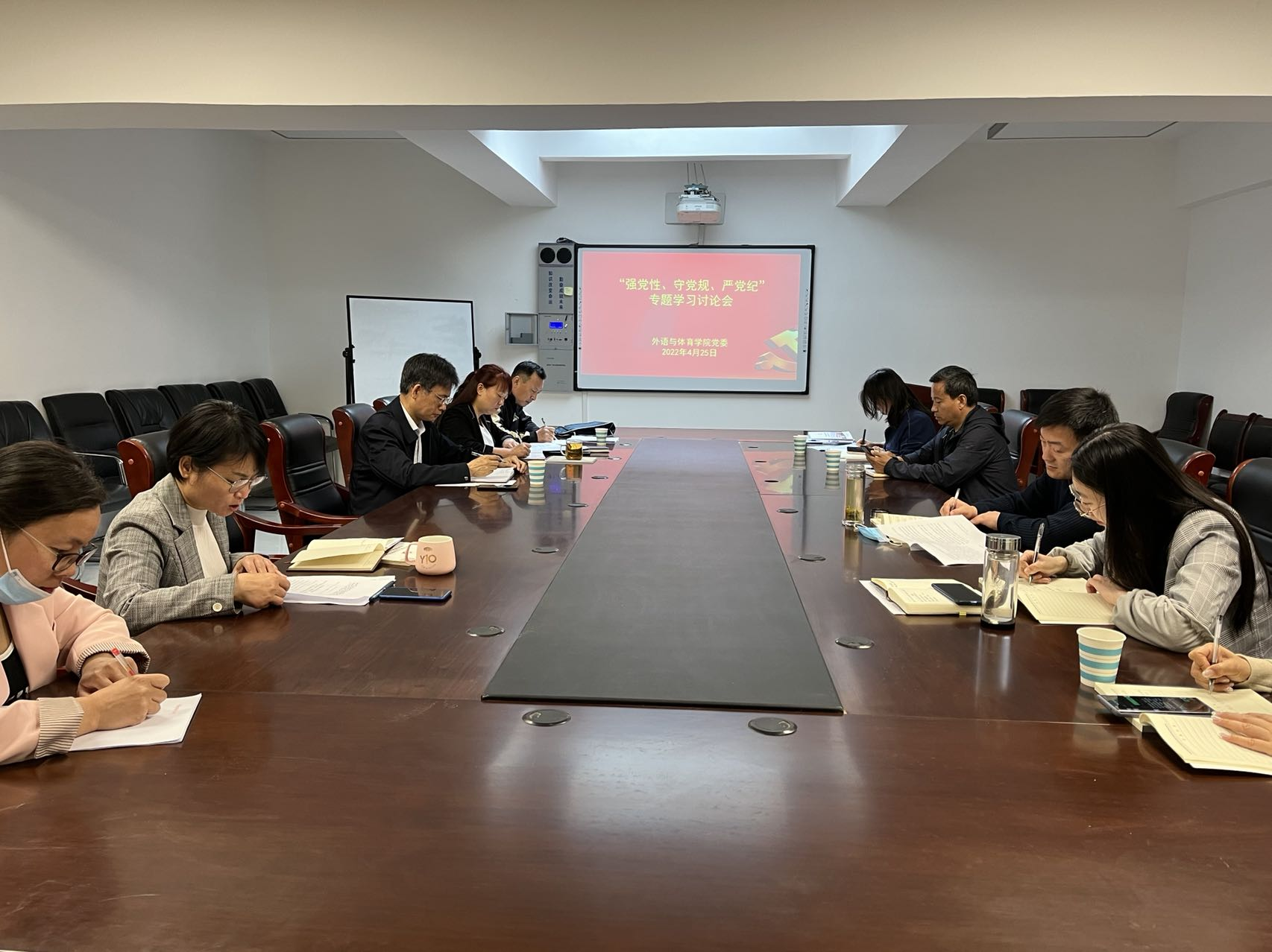 4月25日,外语学院与体育学院党委在外语学院会议室举办党委理论学习中心组(扩大)学习会议,学院党政领导班子全体成员、各党支部书记、党政办主任参加会议。学院党委副书记陈燕主持会议。会议重点学习了《中国共产党廉洁自律准则》《中国共产党纪律处分条例》和《高校党员干部违纪违法和“四风问题”典型案例选编》等内容。针对学习内容,与会人员深入开展讨论反思,大家纷纷表示,在今后的工作中,要强化学习,不断深化对党章党规党纪的再理解、再认识;要时常对照,以党规党纪为镜子、为准绳,努力做学思践悟、遵章守纪的模范;要躬身践行,紧紧围绕学校的中心工作和学院的发展谋划好本职工作,在各自的岗位上勤政廉政、心系群众,用实际行动践行全心全意为人民服务的宗旨。学院党委书记郑会绍要求广大党员干部一要不忘初心,强化党性修养。二要心有所畏,严守党规党纪。三要心中有责,勇于担当奉献。当前学校处于发展的关键时期,新的三大工程到了决胜决战的关键时期,每个人的新医梦就在眼前,不能有半点懈怠迟疑,每个人的力量是弱小的,每个人都积极付出,我们的目标就一定能实现。