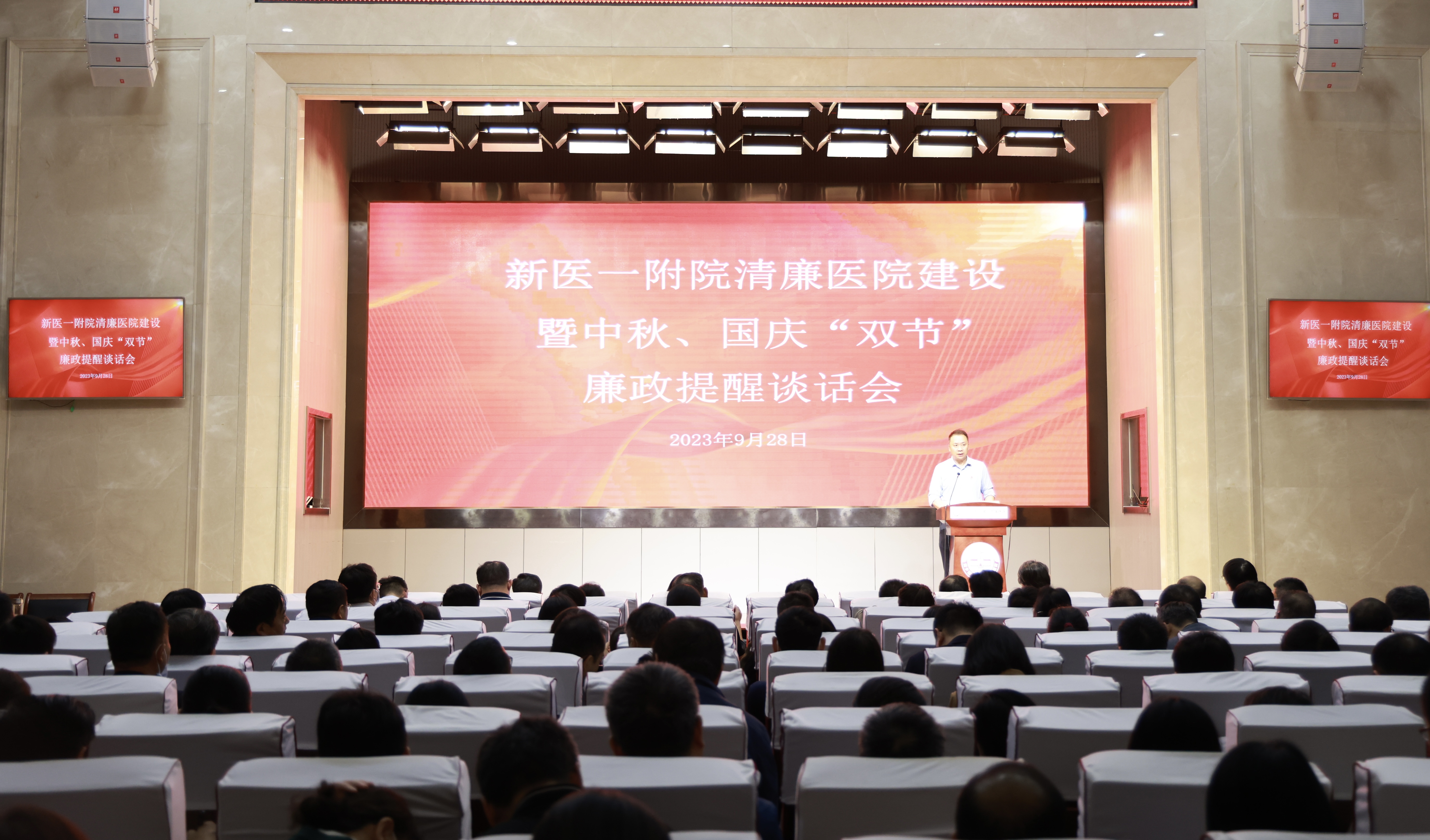 为贯彻落实中央八项规定精神,严守纪律规矩底线,驰而不息纠治“四风”,努力构建清廉医院,营造风清气正的节日氛围,9月28日下午,第一附属医院召开清廉医院建设暨2023年中秋、国庆“双节”廉政提醒谈话会。医院在院院领导及全体中层干部参会。