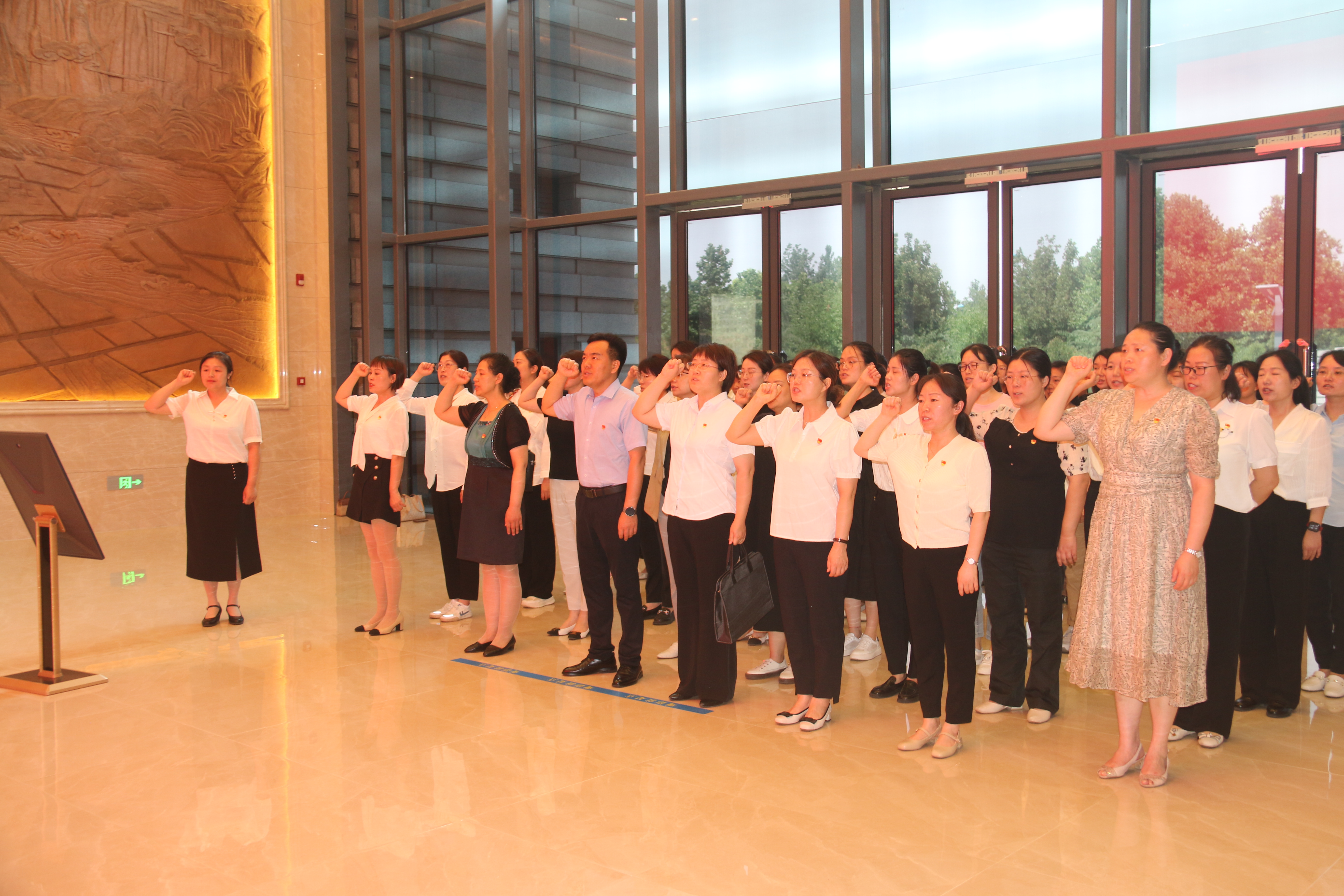 最后,全体党员面朝党旗而立,右手握拳,庄严宣誓,通过重温入党誓词,坚定理想信念,牢记入党初心,牢记责任担当。