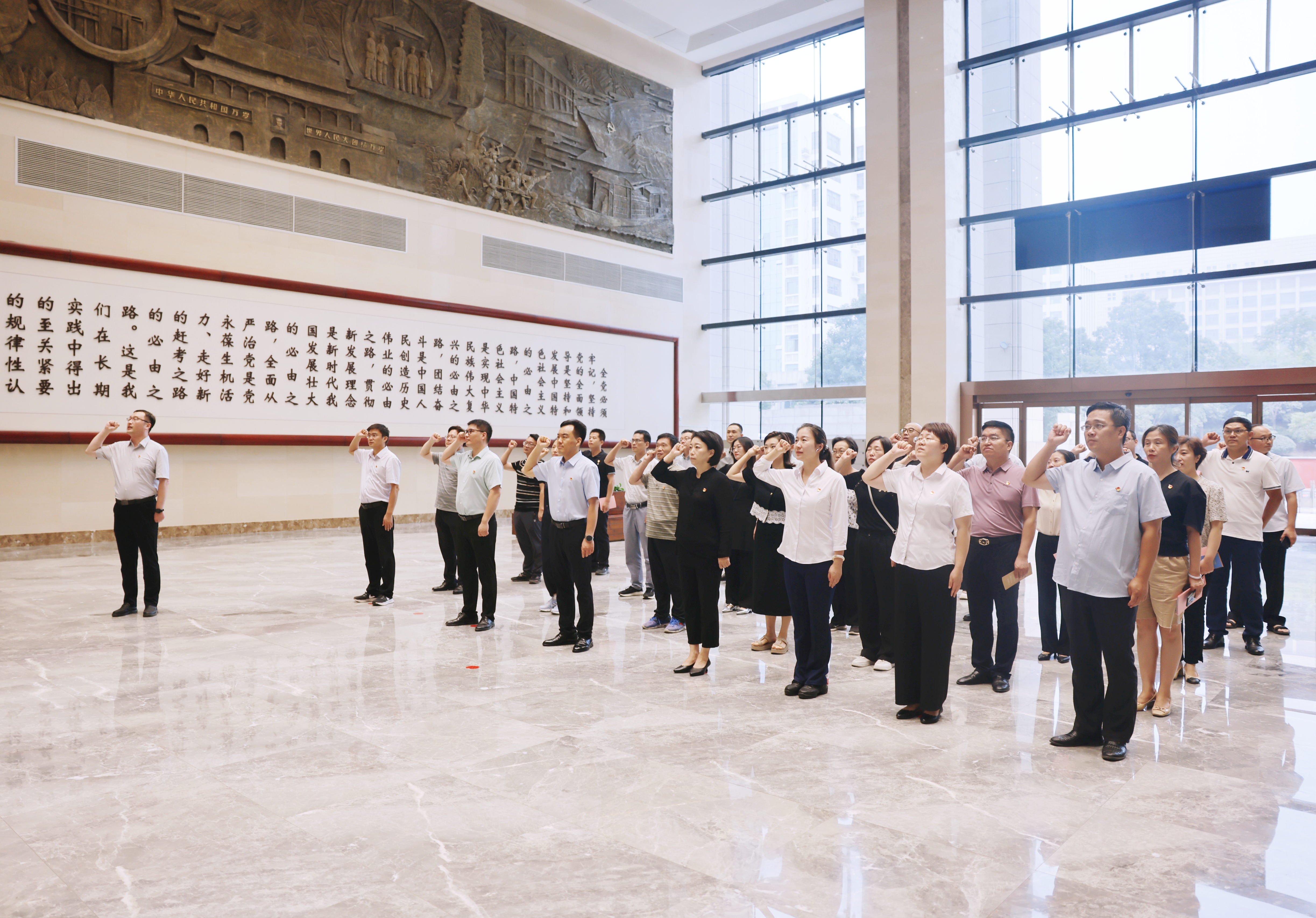 全体党员在党旗下重温庄重而神圣的入党誓词,党员们铿锵有力地宣誓着对党的承诺和誓言,更加坚定信仰,不忘初心,牢记使命,为党和人民的事业贡献自己的力量。