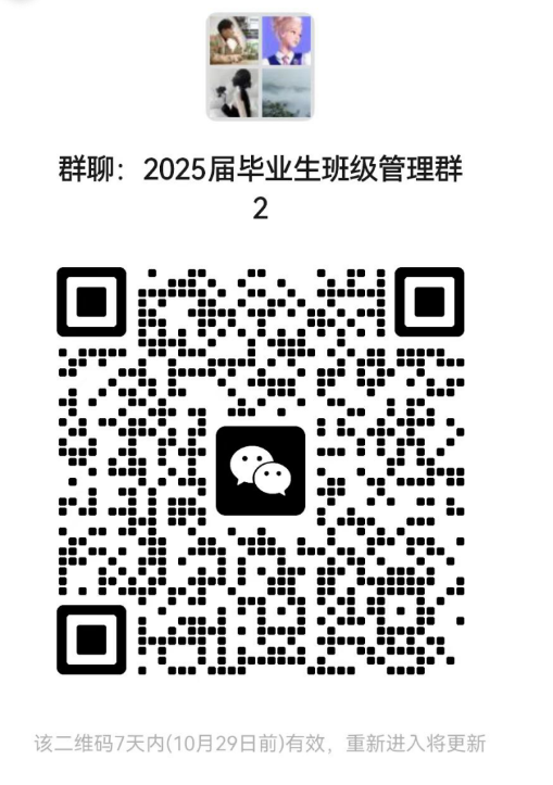 请校本部2025届毕业生务必于1027日前通过手机微信扫描或识别下发二维码,即可加入班级管理群。
