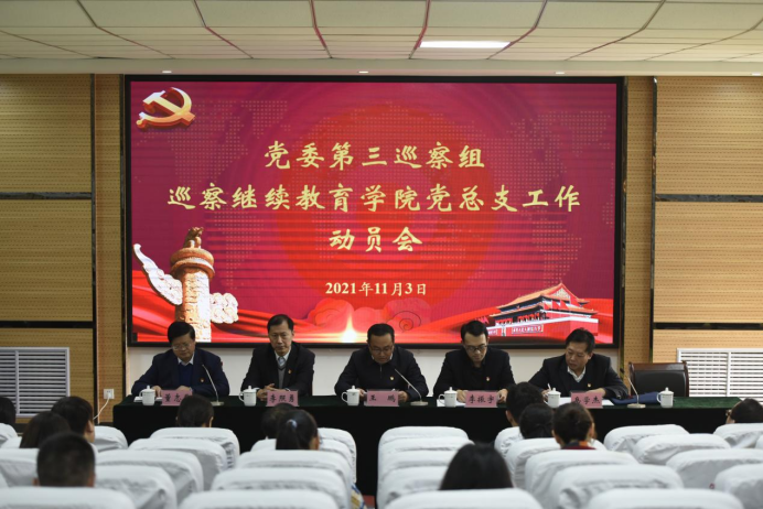 11月3日上午,学校党委第三巡察组巡察继续教育学院党总支工作动员会在继续教育学院报告厅召开,巡察组组长王鹏、副组长李振宇、李照勇、岳学杰及巡察组成员一行8人出席会议,继续教育学院党总支班子成员、党支部书记、科级干部参加会议。继续教育学院党总支书记董志厚主持会议。