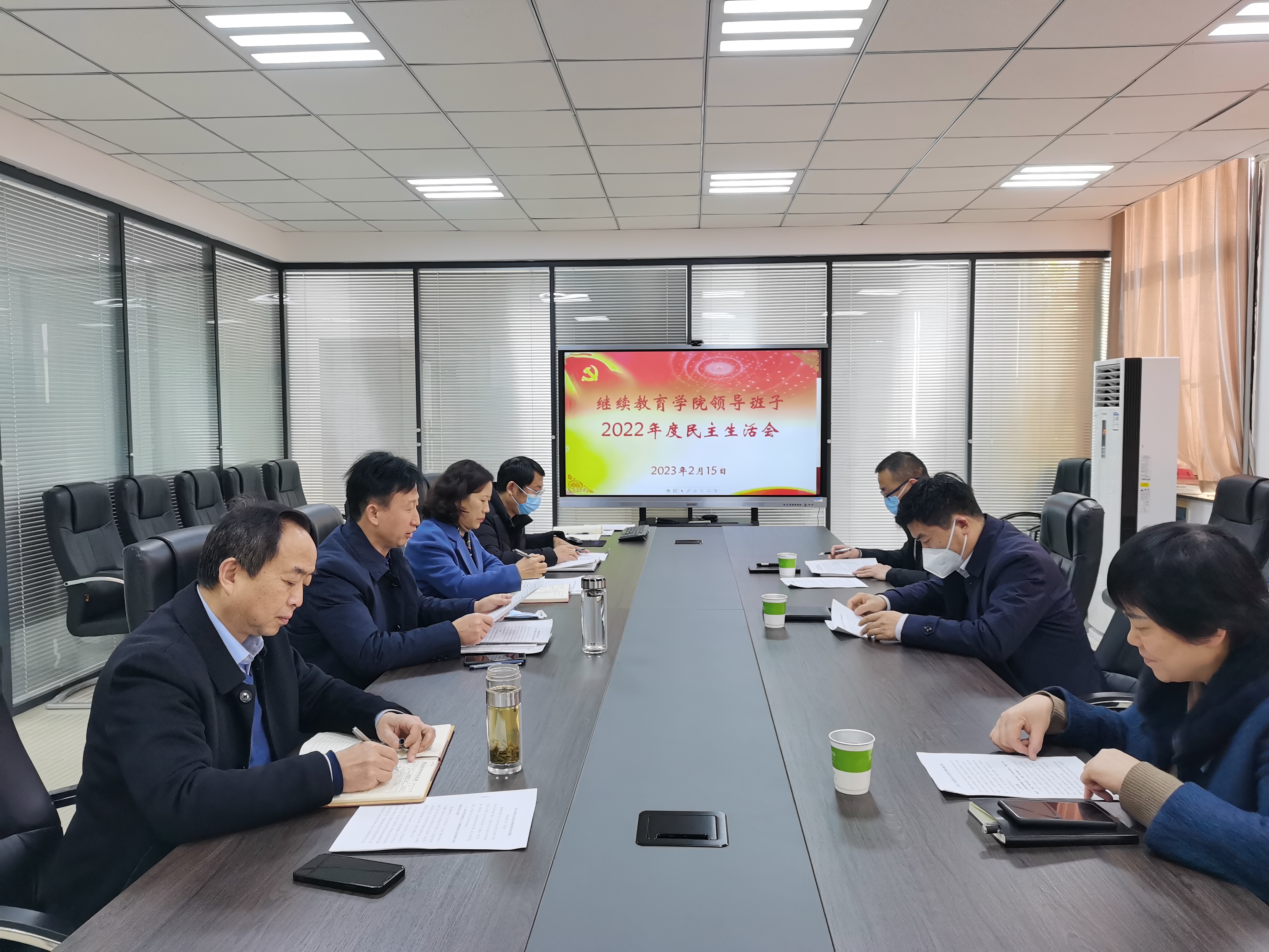2月15日上午,继续教育学院党总支召开2022年度民主生活会,学校党委委员、副校长刘国庚到会指导并作点评,财务部负责同志王金秀、校纪委第二纪检监察室副主任李俊出席会议。