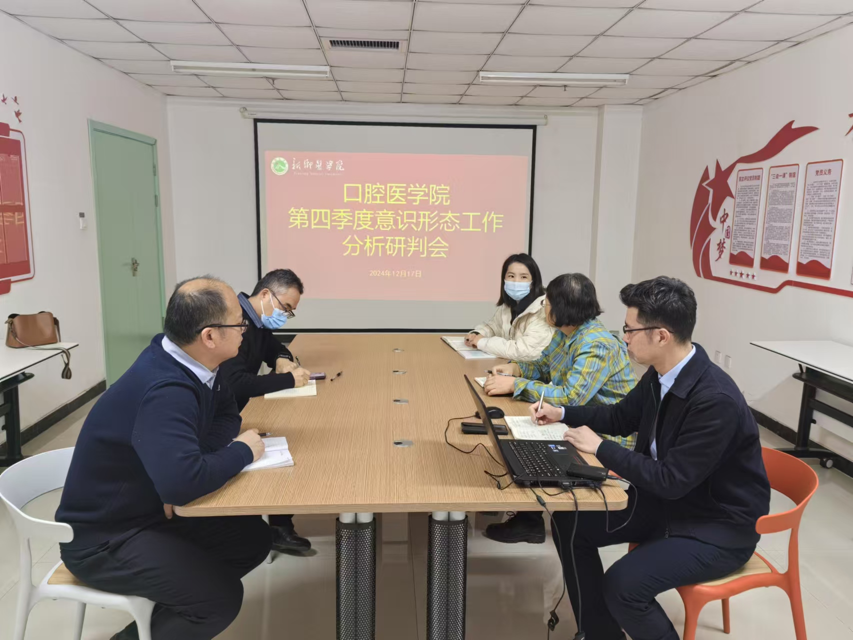 12月17日,我院在口腔医学院党员活动室召开2024年第四季度意识形态工作分析研判会。口腔医学院党总支书记、院长潘莹,副处级组织员刘迎辉及相关部门负责人参加会议。