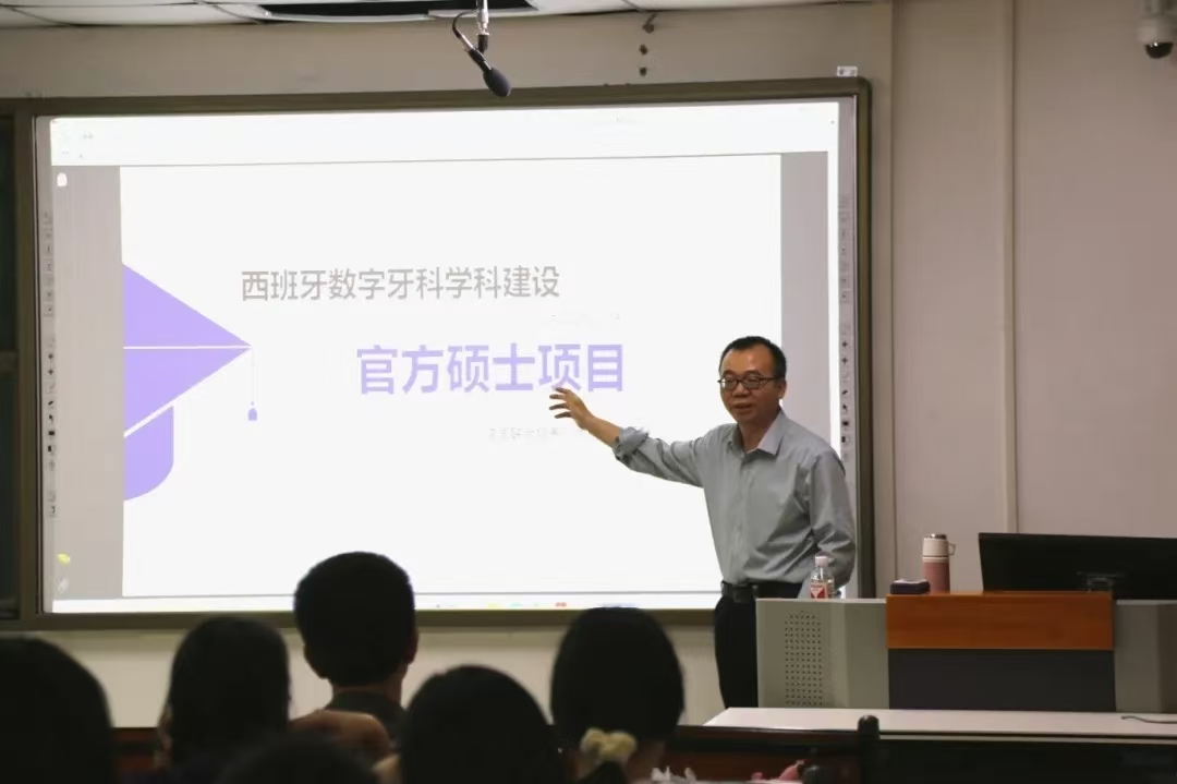 为拓宽同学们的国际视野,提升口腔医学人才培养质量,推动学科交叉融合与国际化教育发展,4月16日下午五时,我院于华亿在线体育(中国)官方网站第三附属医院口腔楼608教室举办了西班牙数字牙科硕士项目专题宣讲会。本次会议西班牙国际出版与文化交流中心(EICC)驻华代表张剑进行讲解。
