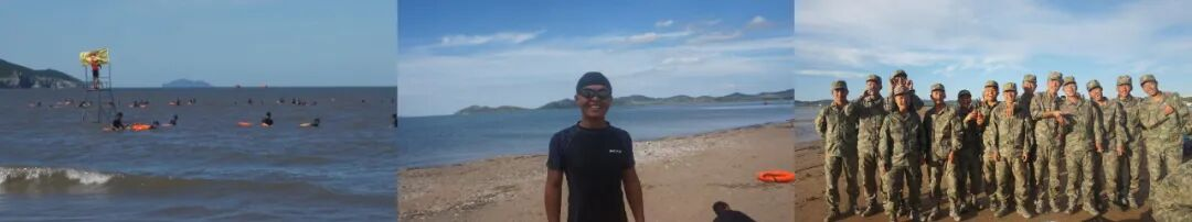 在正式进入夏天时,海上训练才真正的开始。在下海之前,每个人需要先学习蛙泳的理论知识、动作要领及应急的处理,再做完适应性训练后才能下海。这些枯燥乏味的理论适应性训练整整进行了半个多月,大家都急不可耐的想要下海进行尝试,终于在下达可以下海的命令时,大家都肩靠肩的下海,没想到七月份的海水还是如此冰凉透心爽。在泳池里面的感觉和大海里的感觉天壤地别,大家都低估了大海的力量,几乎每个人都在刚下海时多多少少被呛到或喝了海水。连续几天后大家都适应了大海游泳的技巧后,还没来得及开心,就开始上强度,每天几乎除了吃饭,几乎都在海里面泡着,游着。喝的海水开始是咸的,喝多了最后嘴里全是苦味。轻装五公里游,武装泅渡三公里成了每天必不可少的“家常菜”。在这高压高强度下,每个人都黑了几个度,都出现了不同程度的晒伤,但“家常菜”依然是每天不可或缺的一部分,为了任务的顺利完成,大家都奉行连队的“四勇”精神,勇挑重担,勇猛顽强,勇于献身,勇争第一。再苦再累,没有丝毫怨言。
