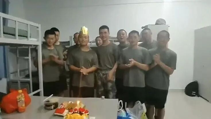 睡梦中“啪”的一声响,宿舍的灯亮了,同班战友都是睡眼惺忪,不知道什么情况。接着班长带来了一个蛋糕和一碗面,把我们都叫过去,告诉大家今天是我的生日,大家共同为我庆祝生日,唱生日歌,切蛋糕,吃蛋糕,让我吃上长寿面。拿起筷子时,我热泪盈眶,滚烫的泪珠顺着掉到碗里,心里百感交集,五味杂陈……所有人一人一口把面吃完,在此刻这碗面被赋予了特殊的意义,它是我们八班一路长虹的开始。那天,是我十九岁的生日,是我毕生不能忘的生日。十九岁生日,我最大的礼物,就是穿上了梦寐以求,此生引以为傲的橄榄绿,同时遇到了一群最可爱的人。