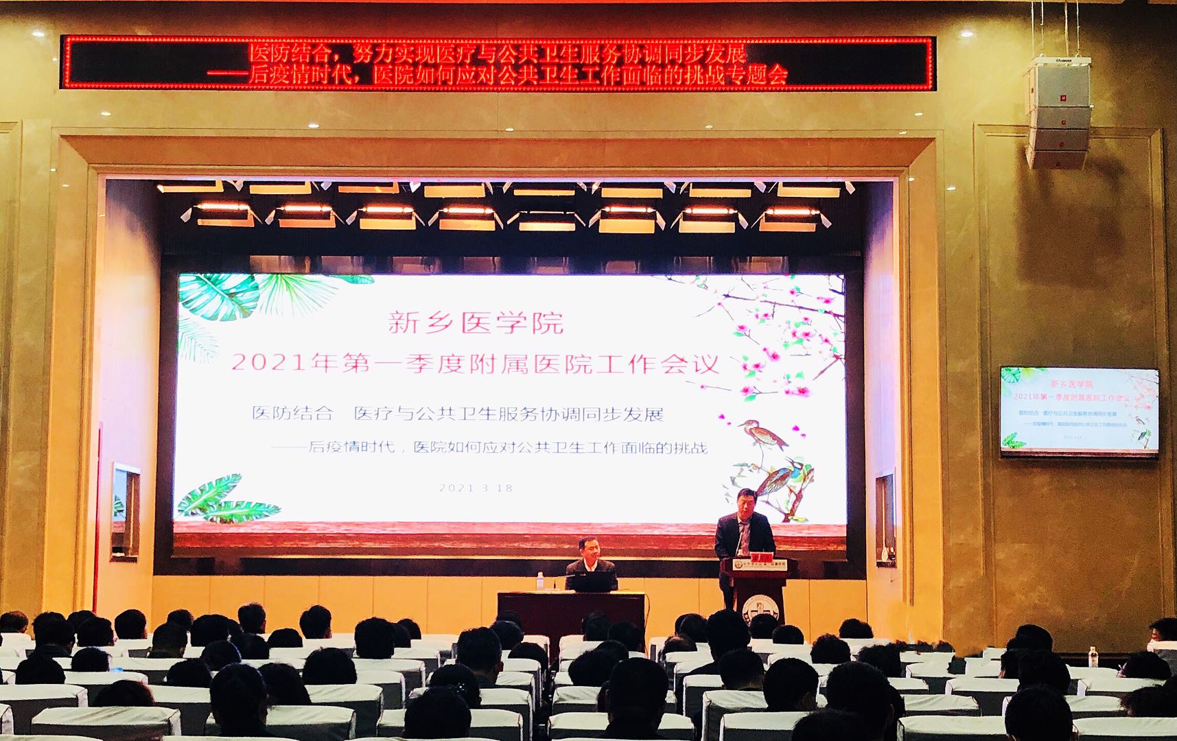 3月18日下午,我校2021年第一季度附属医院工作专题会议在第一附属医院9号楼二楼会议室召开。会议邀请河南省疾病预防控制中心党委书记周勇作专题讲座。校党委委员、工会主席邵金远出席会议并致辞。学校5所附属医院全体副处级以上干部、相关科室主要负责人参加会议。会议由医院管理办公室负责人主持。