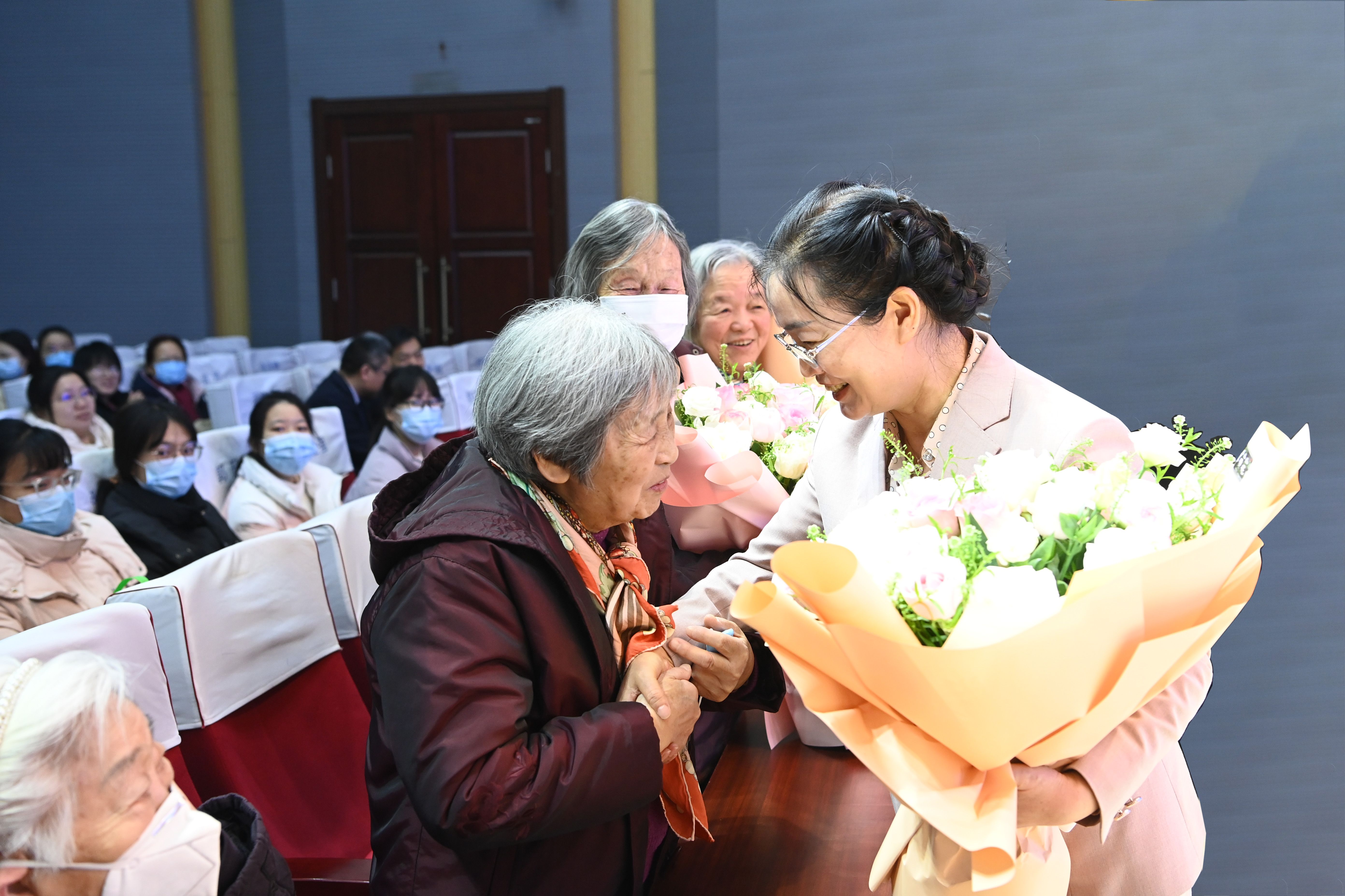 阮祥燕教授在妇产内分泌领域取得了非凡的成就,却并未忘记培养自己、为自己指明专业方向的恩师。为表达对前辈老师们的敬意,阮教授分别为老师们献花并合影留念!