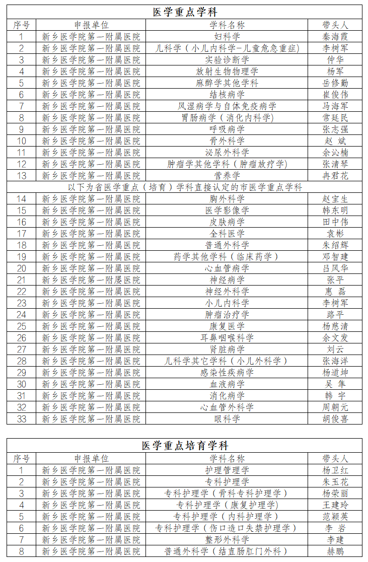 依据新乡市卫生健康委最新公布的《2024-2026年新乡市医学重点(培育)学科名单》(新卫〔2025〕21号),我院临床药学专业被认定为首批新乡市医学重点学科。此次我院共有41个学科入选(含33个重点学科、8个重点培育学科),临床药学的成功入选,标志着该学科建设成果获得市级权威认可。