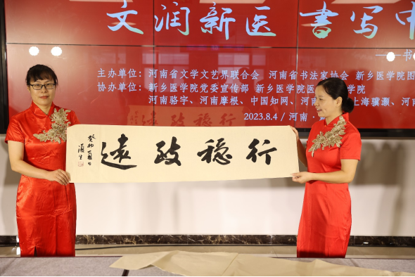 为深入推进特色鲜明的现代化医科大学建设,推进中华优秀传统文化进校园,8月4日至5日,由河南省文学艺术界联合会、河南省书法家协会、我校图书馆主办,党委宣传部、医学人文学院协办的传统文化进校园之“文润新医、书写中国”——书法名家走进华亿在线体育(中国)官方网站主题活动在图书馆举行。河南省书法家协会主席吴行,河南省书法家协会副主席郑庆伟、王乃勇,河南省青年书法家协会副主席洪丰仓,河南师范大学美术学院教授刘凤山到会挥毫泼墨,将书法艺术送进校园。
