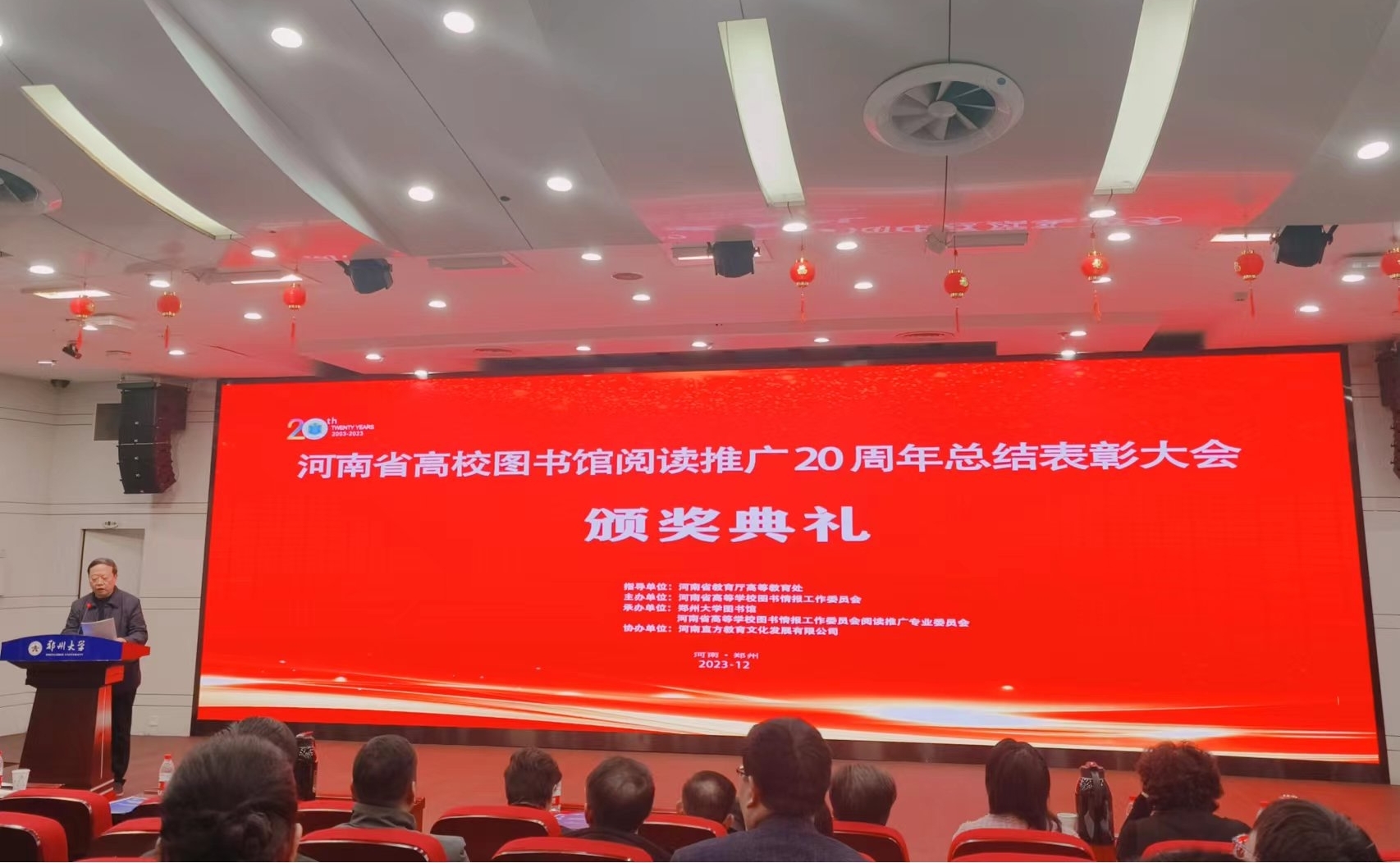 12月15日,由河南省高校图书情报工作委员会主办的河南省高校图书馆阅读推广20周年总结表彰大会在郑州举行。我校图书馆荣获“阅读推广先进单位”称号,大学生图书管理委员会荣获“优秀读书社团”称号,“‘行墨馆藏,书续芳华’——‘医海拾贝’(智力搜书)活动”荣获“优秀阅读推广案例”,李姝娟、邢秋霞两位老师荣获“优秀阅读推广人”称号。