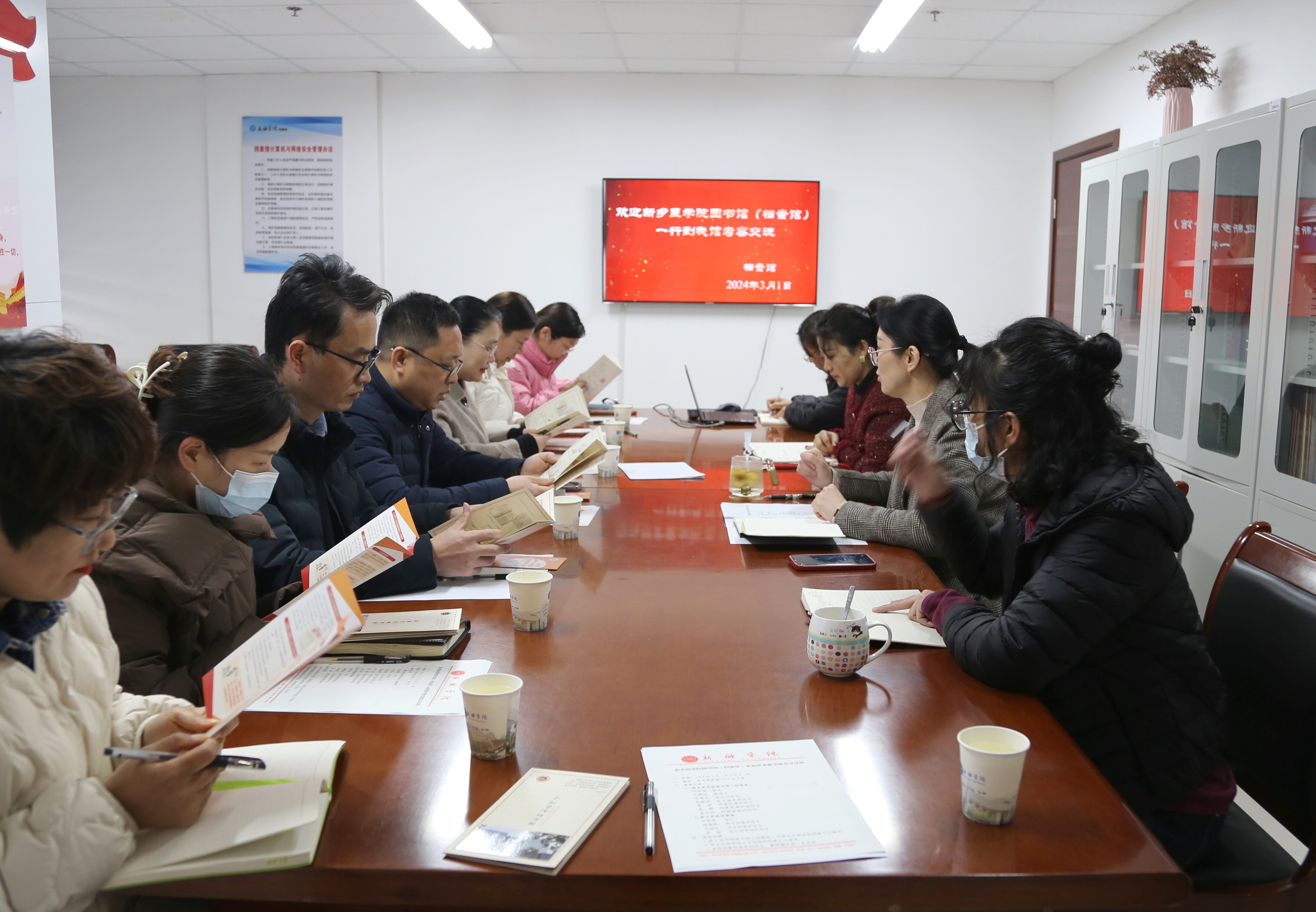 为深入推进我校档案馆建设,切实提高档案工作质量和服务水平,进一步发挥“为党管档、为校守史、为师生服务”职责, 3月1日上午,我校图书馆(档案馆)馆长刘波涛带队到新乡学院档案馆交流学习,副馆长王路达及相关科室负责人一同前往。新乡学院档案馆馆长安彩英及相关科室负责人热情接待了我校人员。