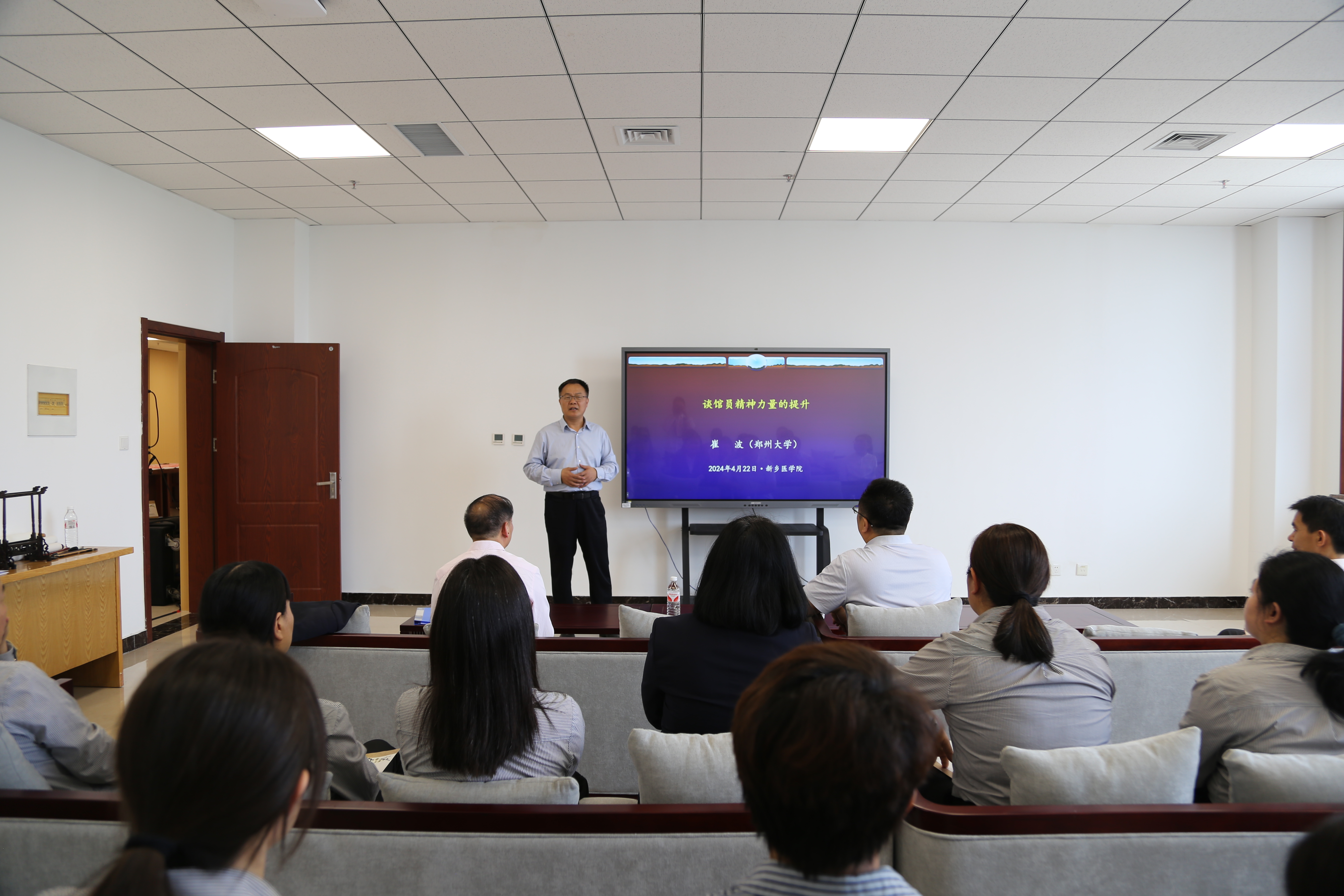 启动仪式结束后,崔波教授以《谈馆员精神力量的提升》为题,围绕“新时代馆员”“精神力量如何提升”“社科基金申报的几个问题”等内容为图书馆全体职工开展了一场精彩的专题讲座。