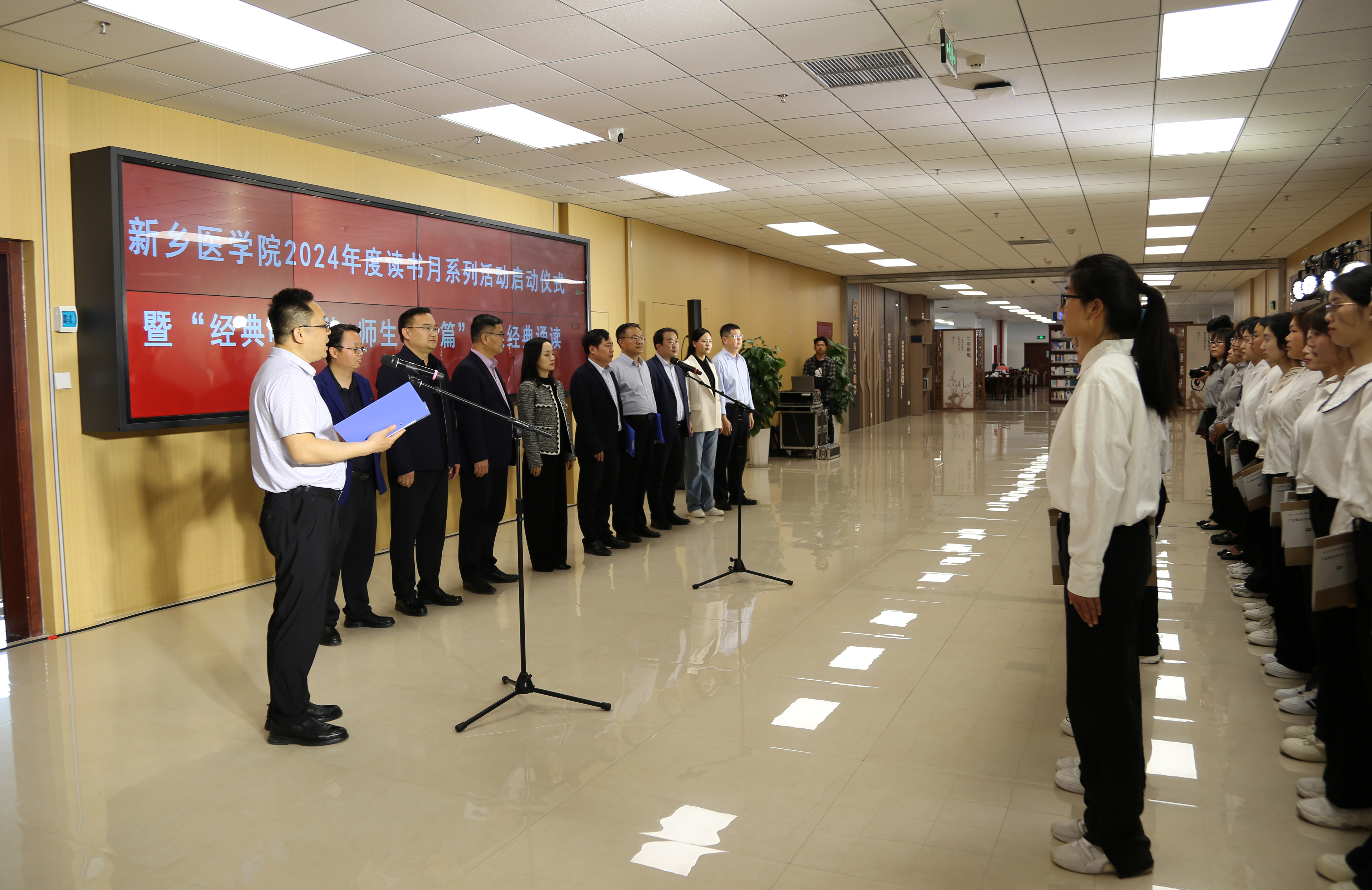 王天云在致辞中强调了读书学习的重要性并要求,图书馆作为高校文明传承和文化宣传的重要阵地,要进一步强化经典阅读,坚定理想信念,充分发挥图书馆功能作用,引导师生在品读经典中汲取中华优秀传统文化精华,塑造自信自强的高尚品格,为推进中国特色社会主义文化建设贡献力量。王天云指出,今年是中华人民共和国成立75周年,也是我校实施“十四五”规划的关键一年。读书月活动要坚持思想引领,注重传承创新,把培育和践行社会主义核心价值观、弘扬中华优秀传统文化、厚植爱党爱国爱校情怀贯穿活动始终,以阅读经典助力铸魂育人。要坚持以习近平新时代中国特色社会主义思想为指引,坚定文化自信,坚持守正创新,在全校上下营造浓厚的读书学习氛围。他希望全体师生在读书中不断汲取精神滋养,涵养浩然正气,为建设书香校园作出积极贡献。