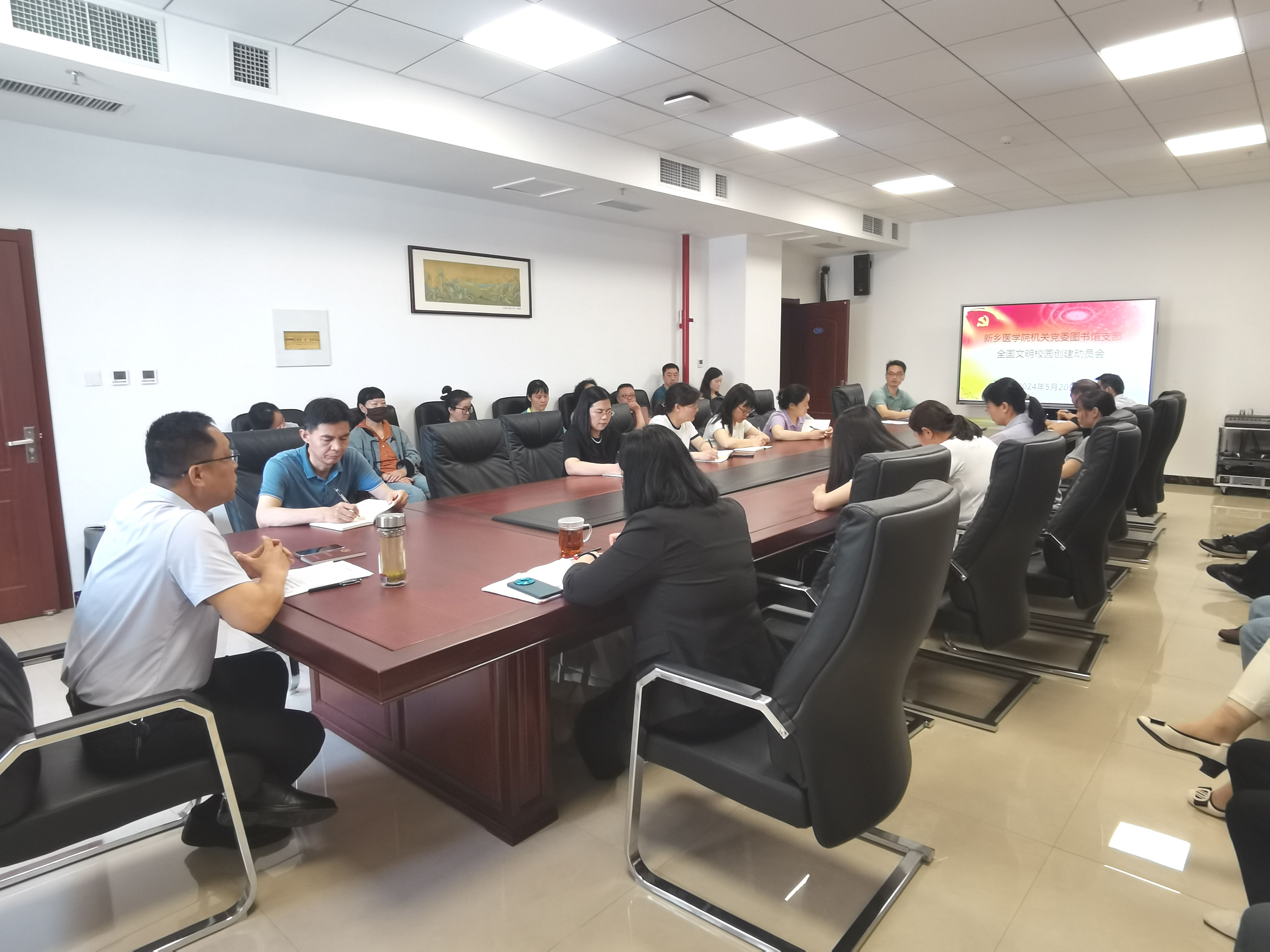 5月20日上午,图书馆召开专题会议,传达学校创建全国文明校园动员大会精神。图书馆全体职工参加会议。会议由图书馆馆长刘波涛主持。