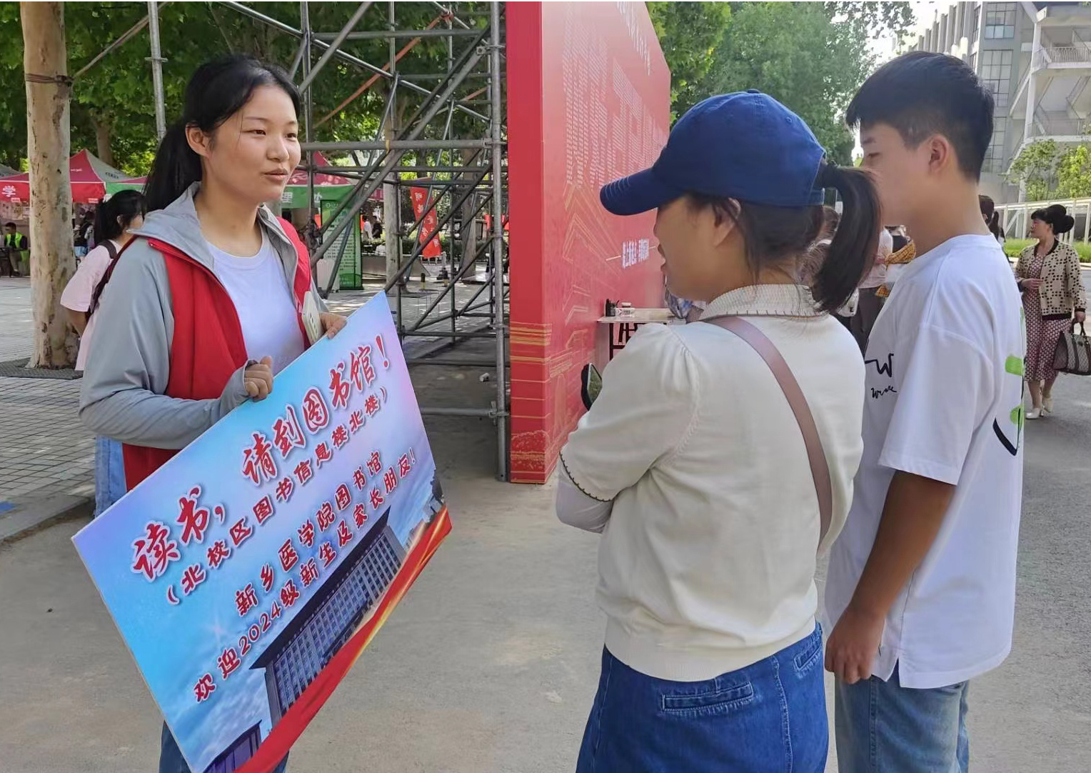 为了让2024级新生进一步了解图书馆的基本情况,充分利用馆内资源和服务,图书馆开展了迎新开放日活动。大学生图管会的6名志愿者讲解员带领新生及家长实地参观图书馆,详细介绍各楼层分布及功能分区,为新生讲解入馆注意事项、图书借还等操作流程并进行了现场演示,耐心解答了他们提出的一些问题;讲解员们准备充分、讲解熟练、声音清晰,获得了新生和家长们的一致好评。志愿者们还来到南北校区各个迎新点,向新生和家长介绍图书馆的基本情况,邀请他们到图书馆参观,感受图书馆浓厚的学习氛围,帮助新生迅速开启在图书馆读书学习的美好时光。